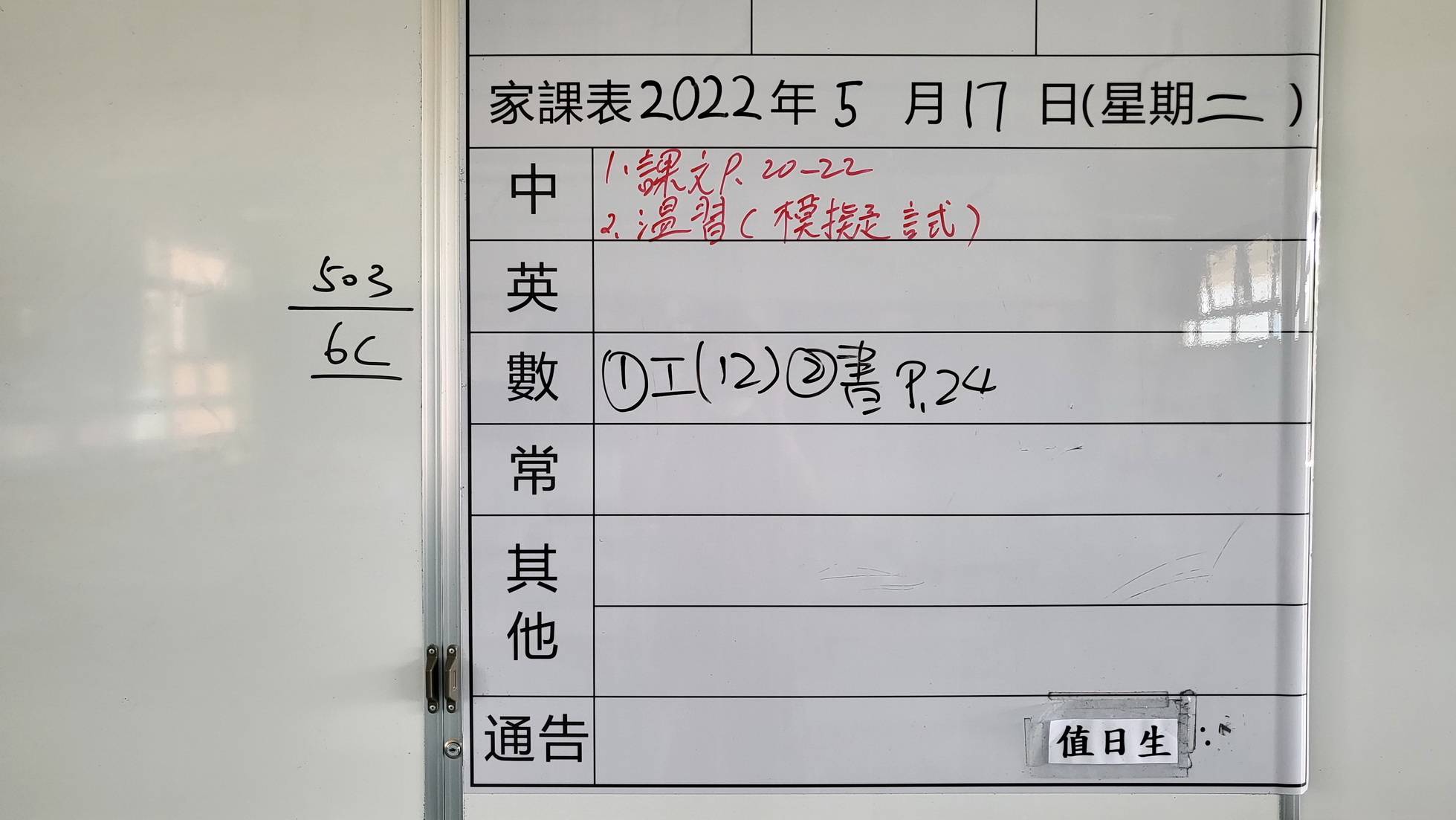 六年級家課代號
