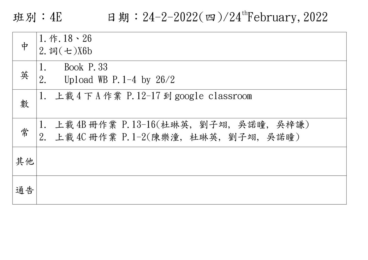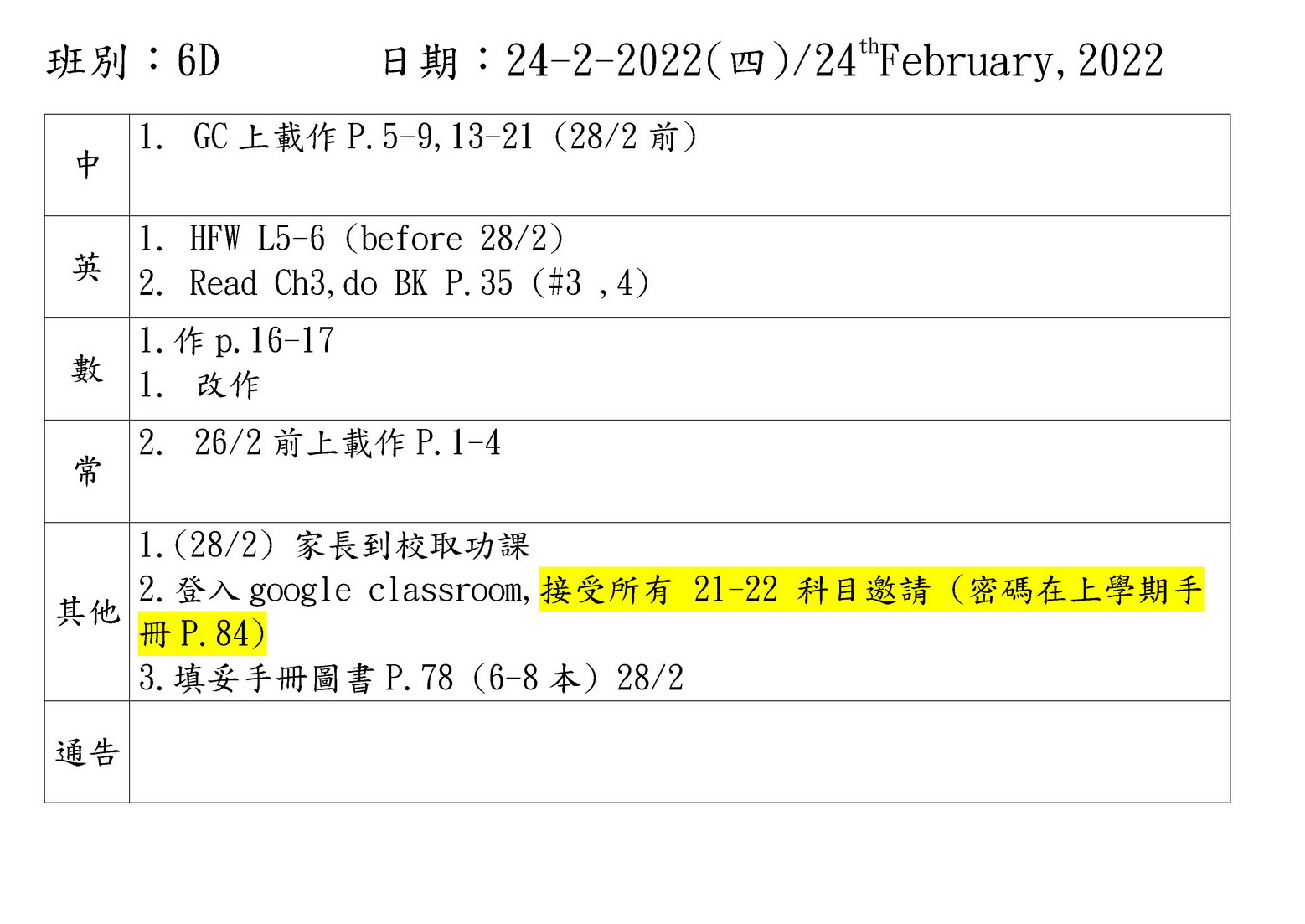 網上家課冊只供參考,一切內容以學生手冊為準。