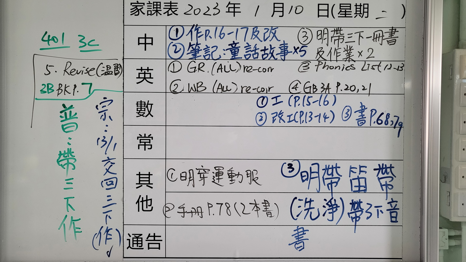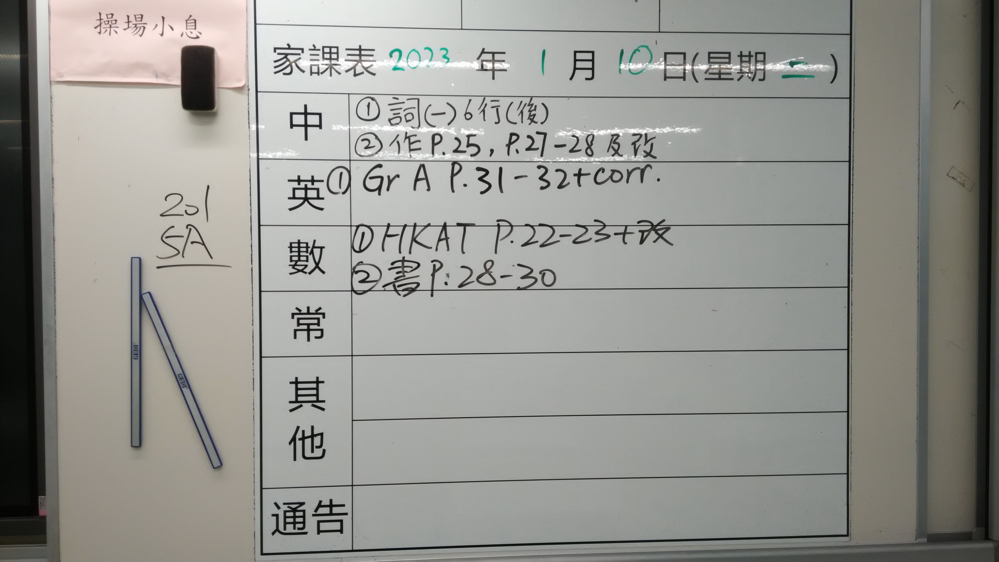 一至三年級家課代號