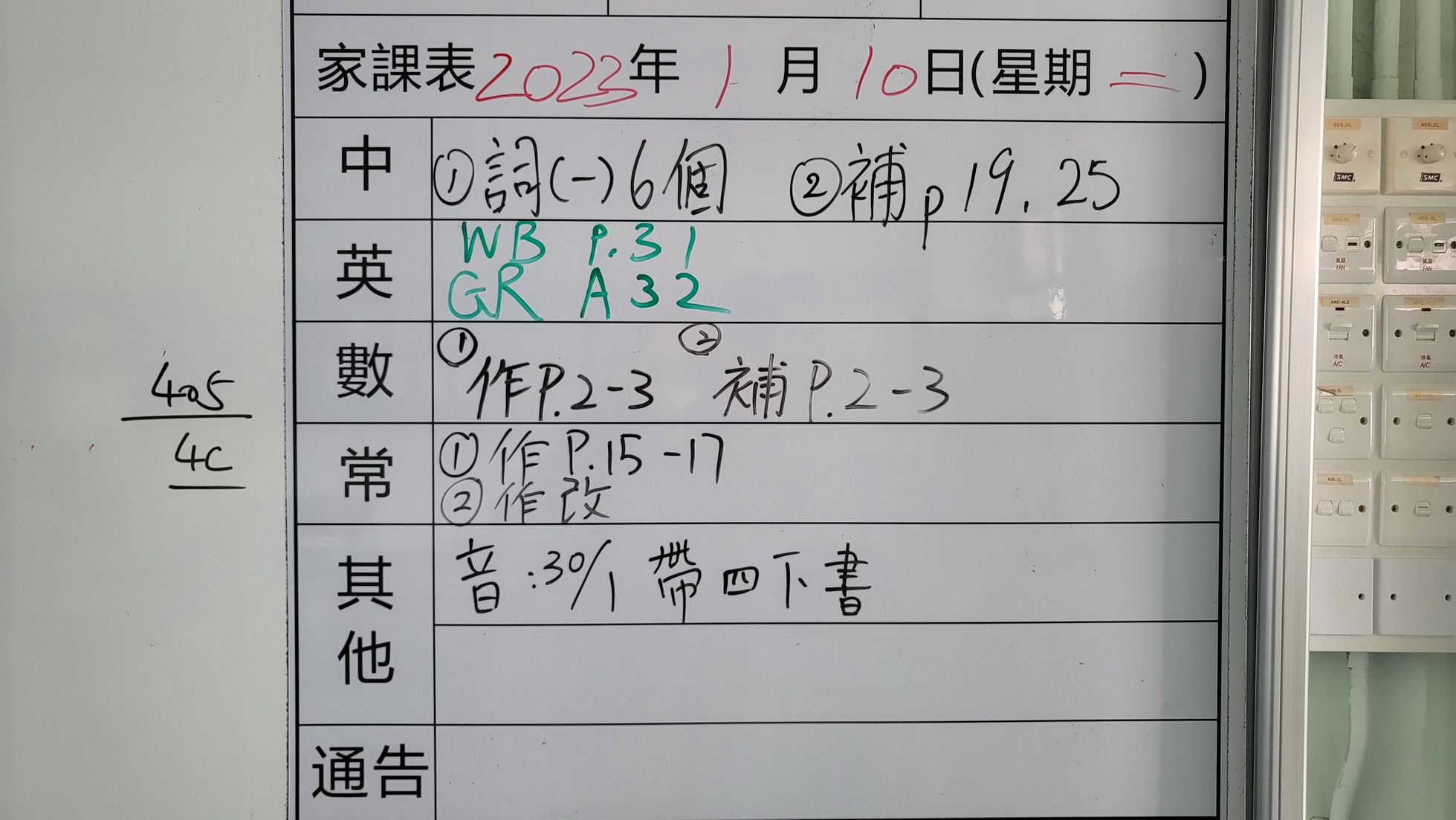 四至六年級家課代號