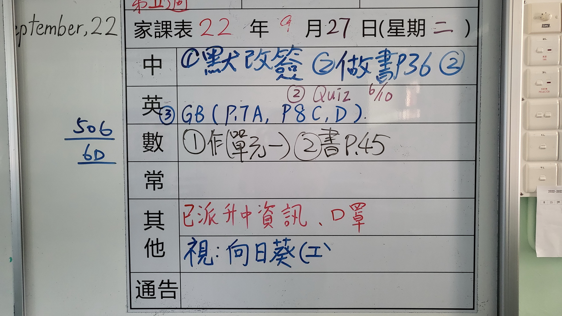 四至六年級家課代號