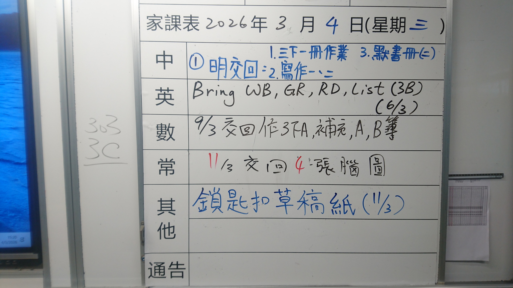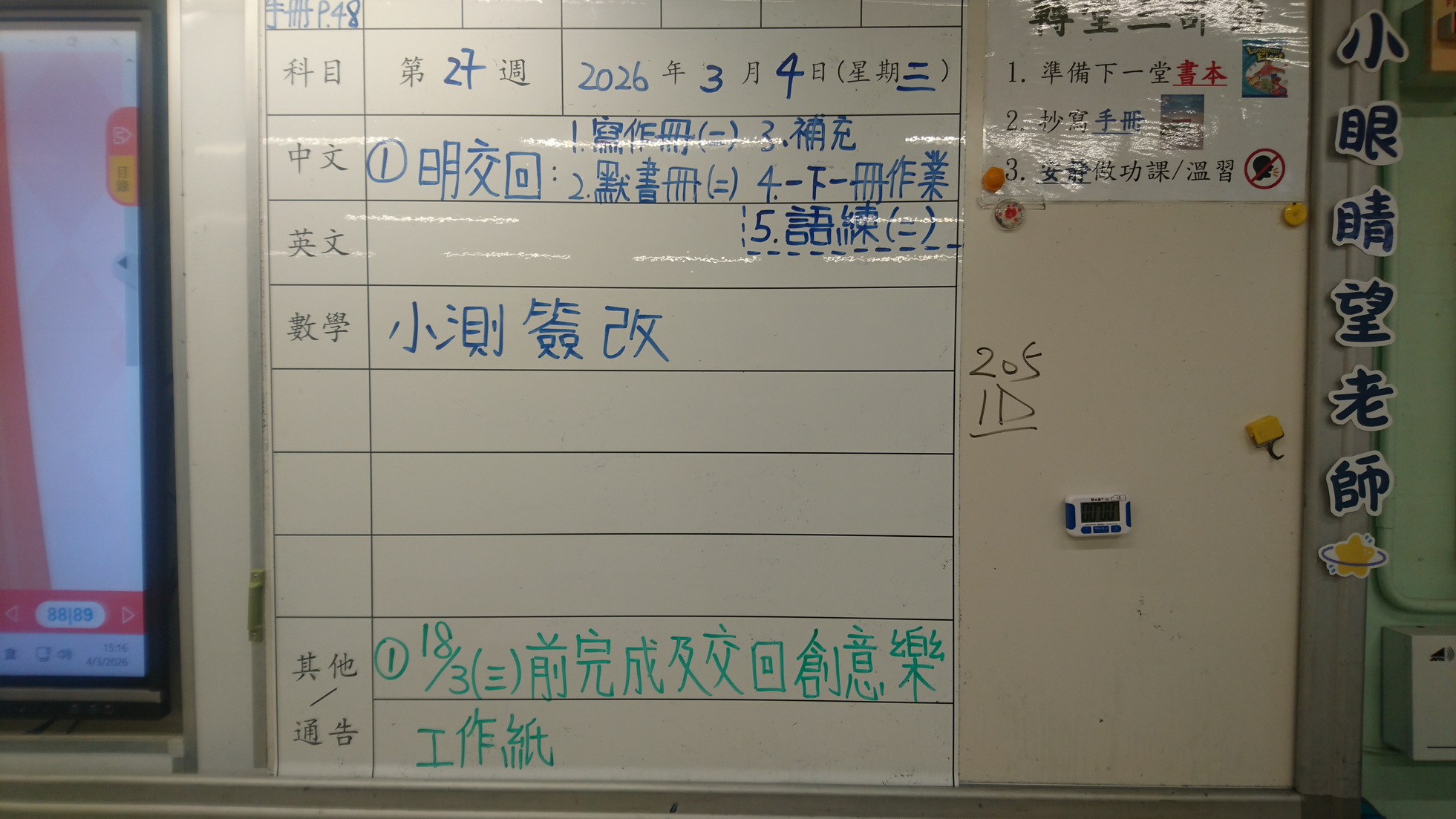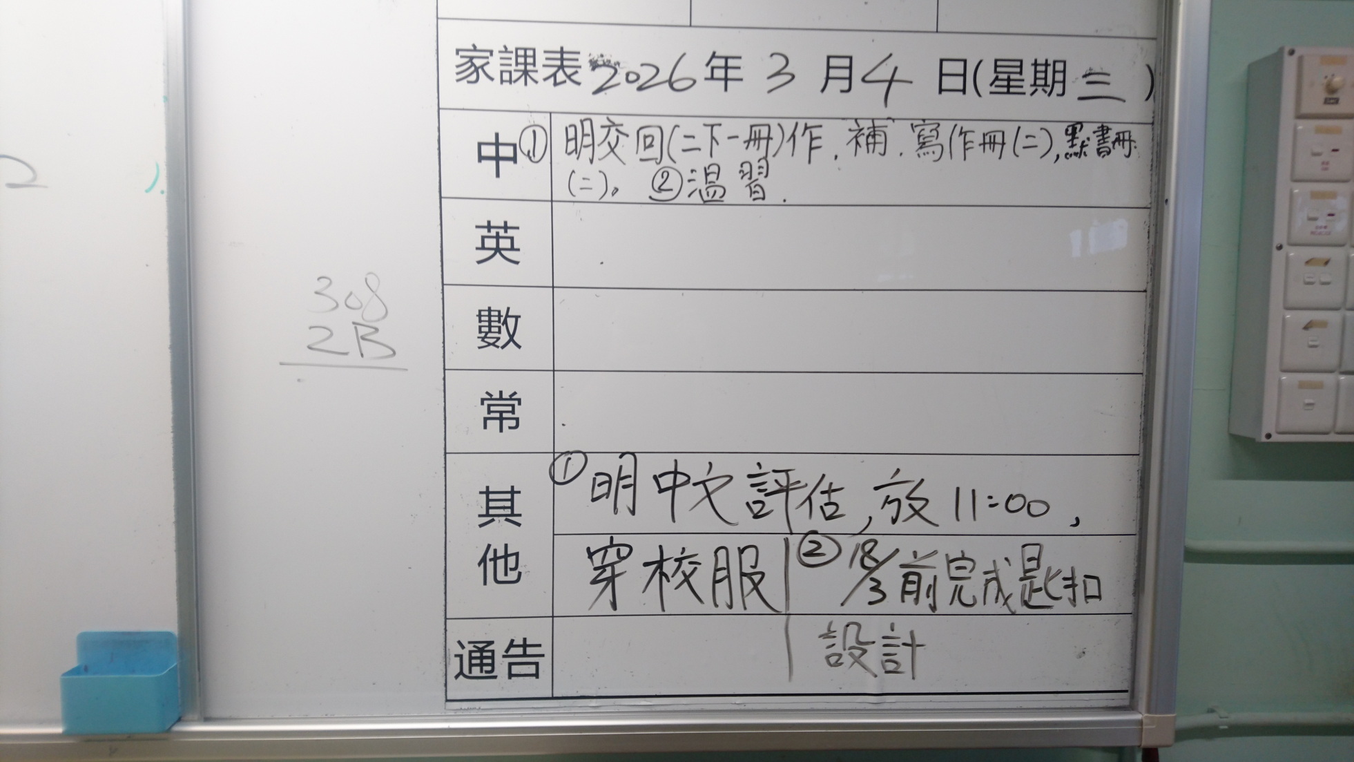 四年級家課代號表