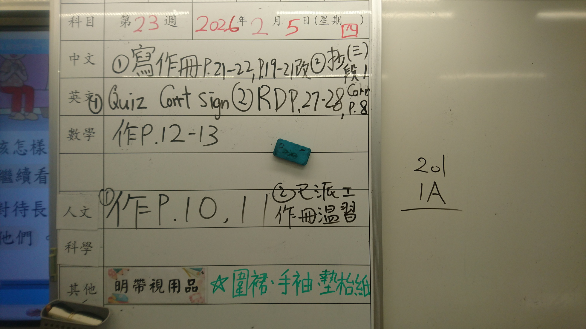 四年級家課代號表