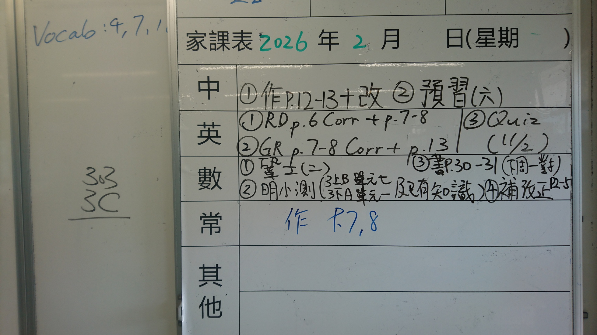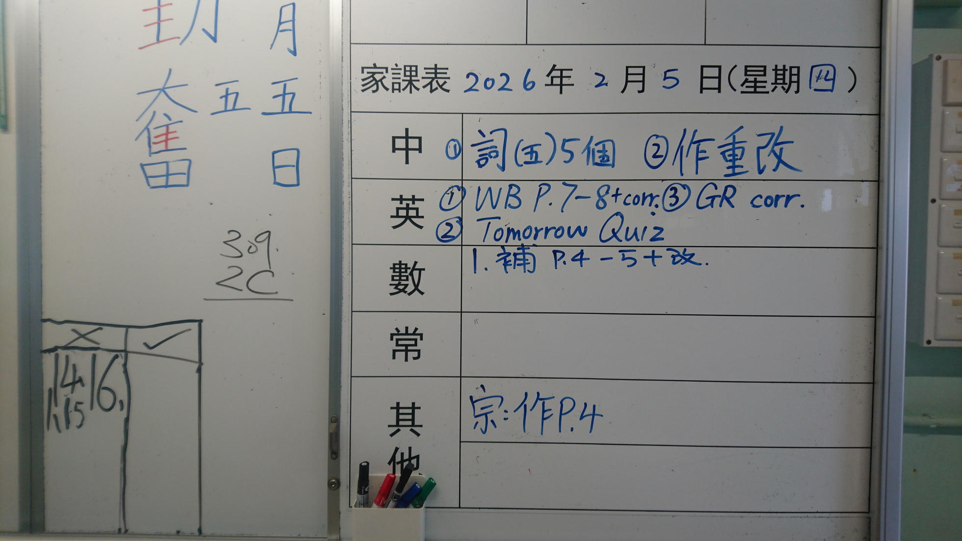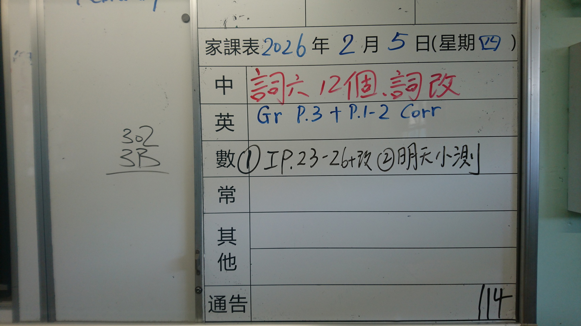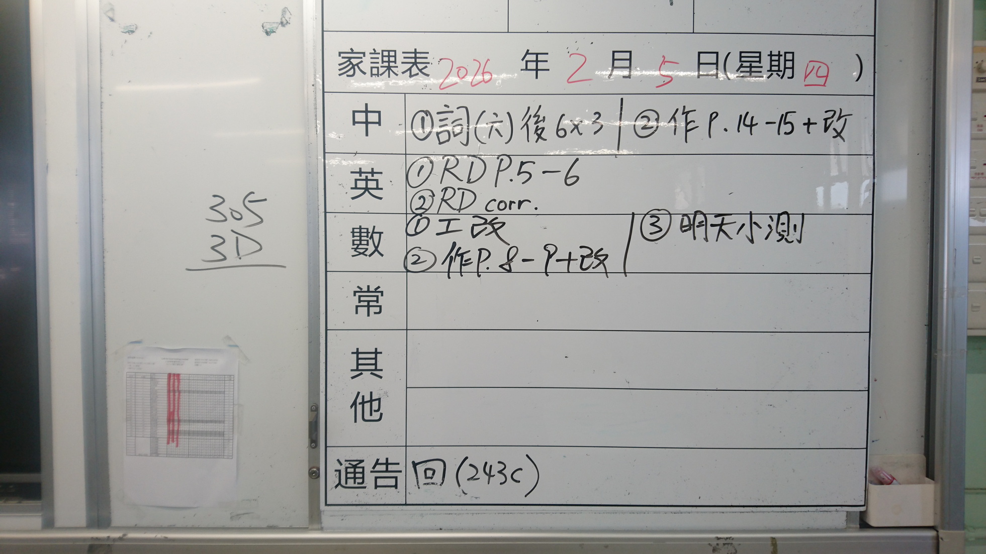 五至六年級家課代號表