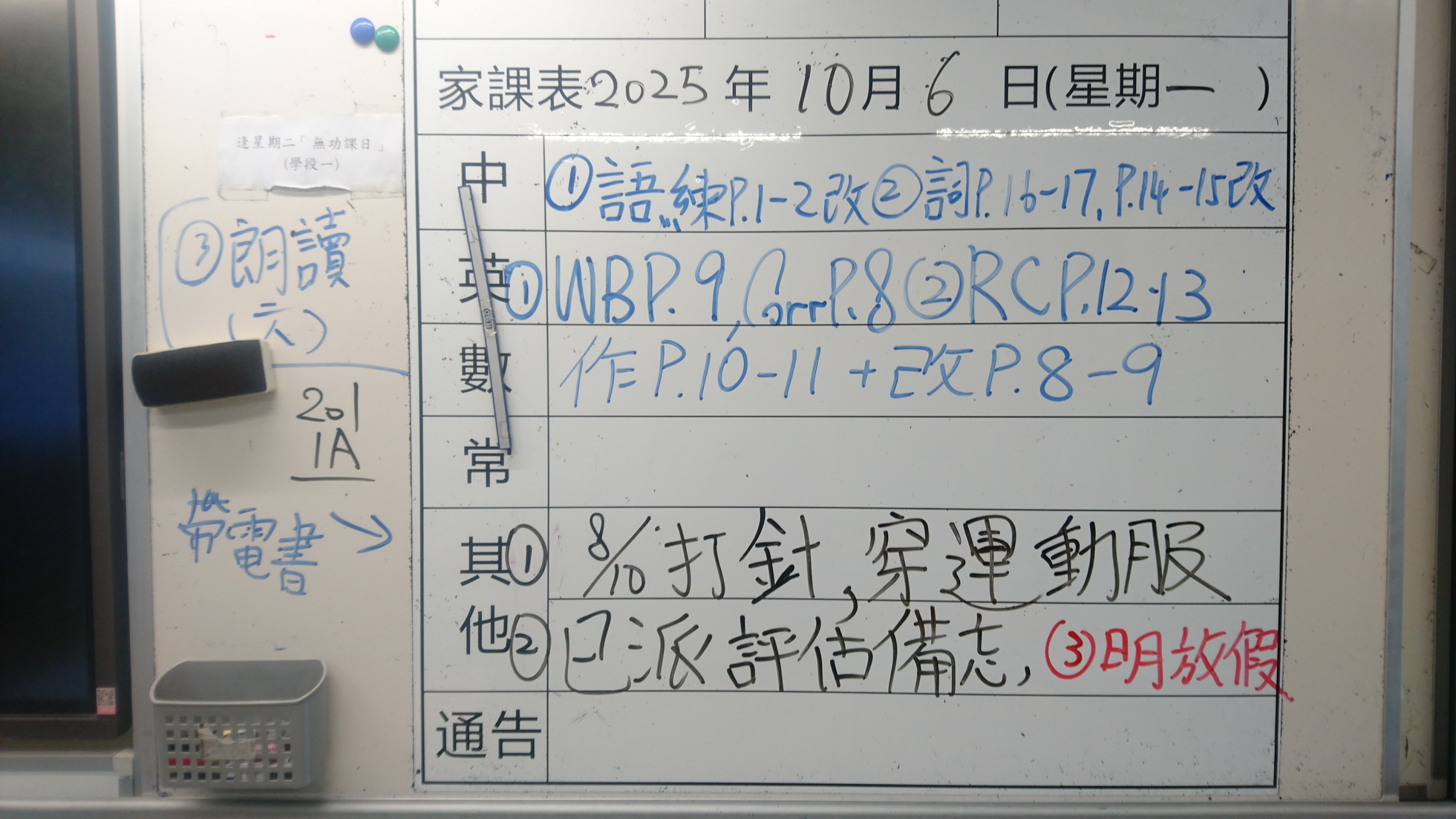 一年級家課代號表