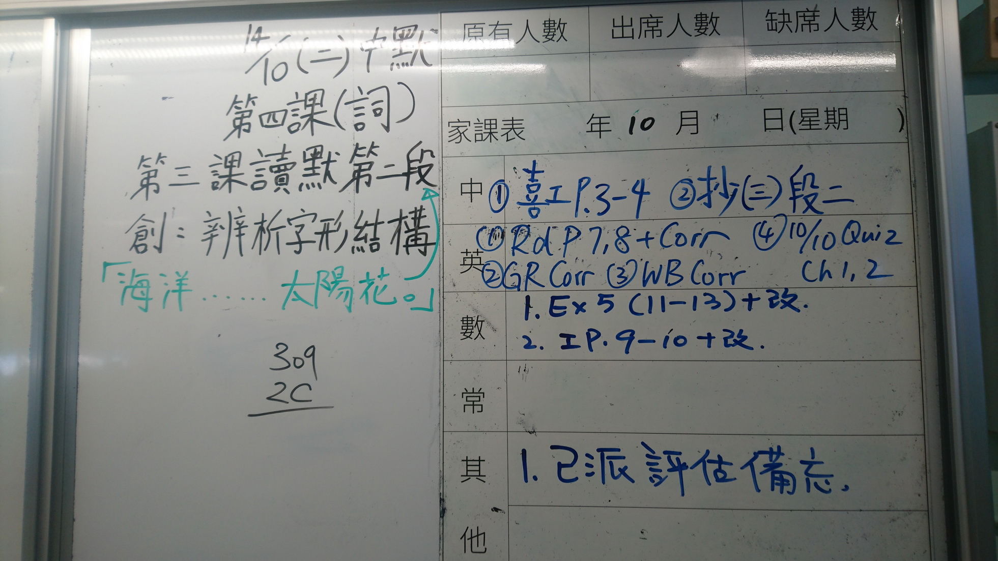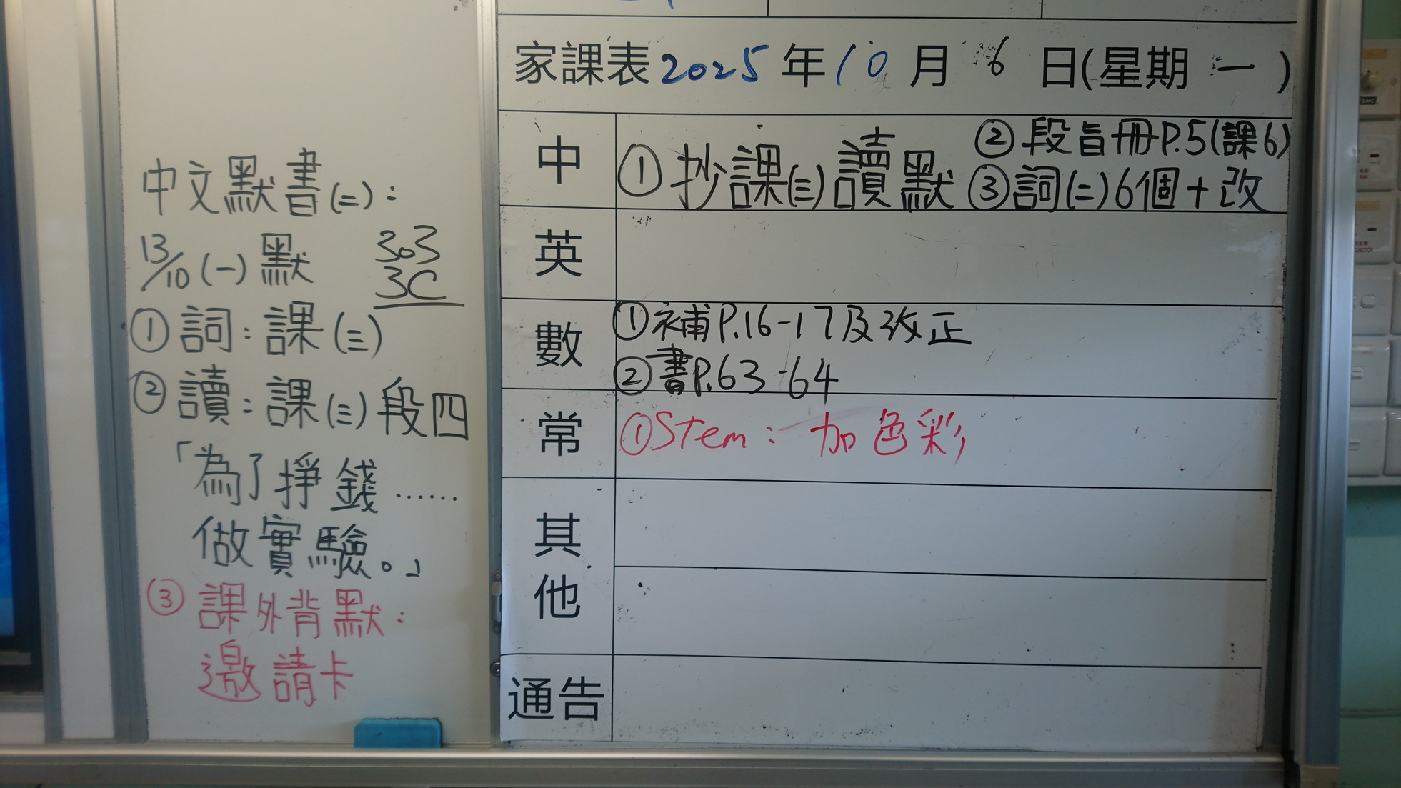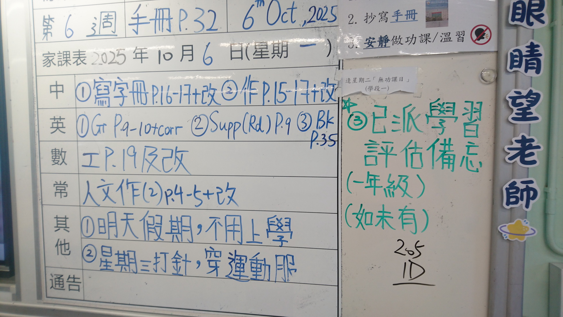 四年級家課代號表