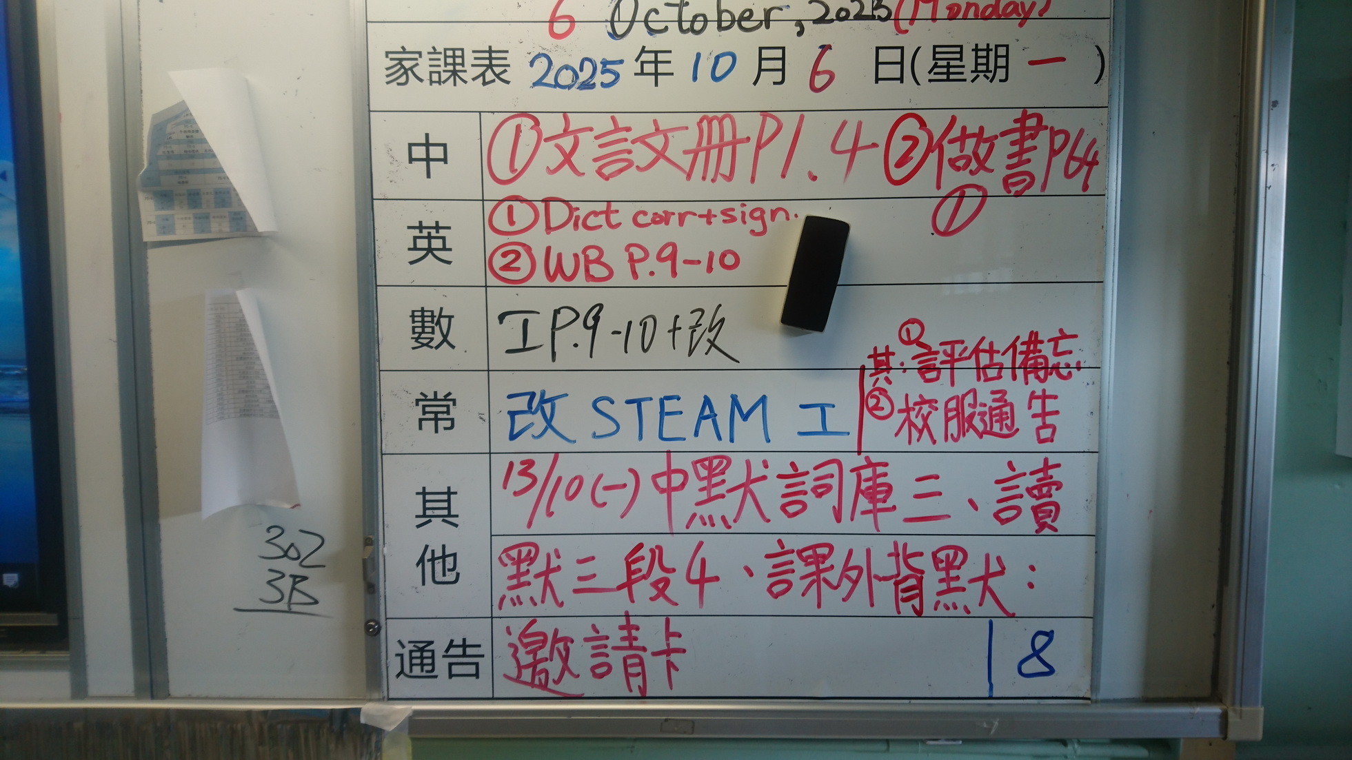 五至六年級家課代號表