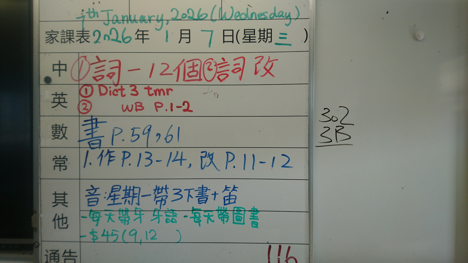 二至三年級家課代號表