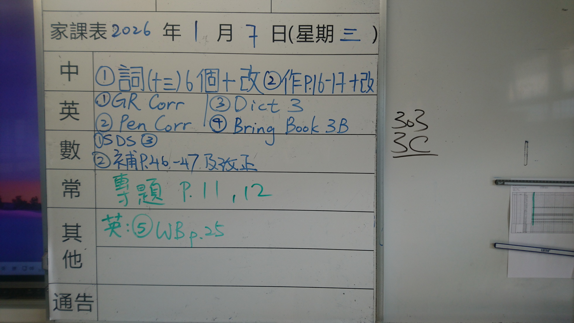 四年級家課代號表