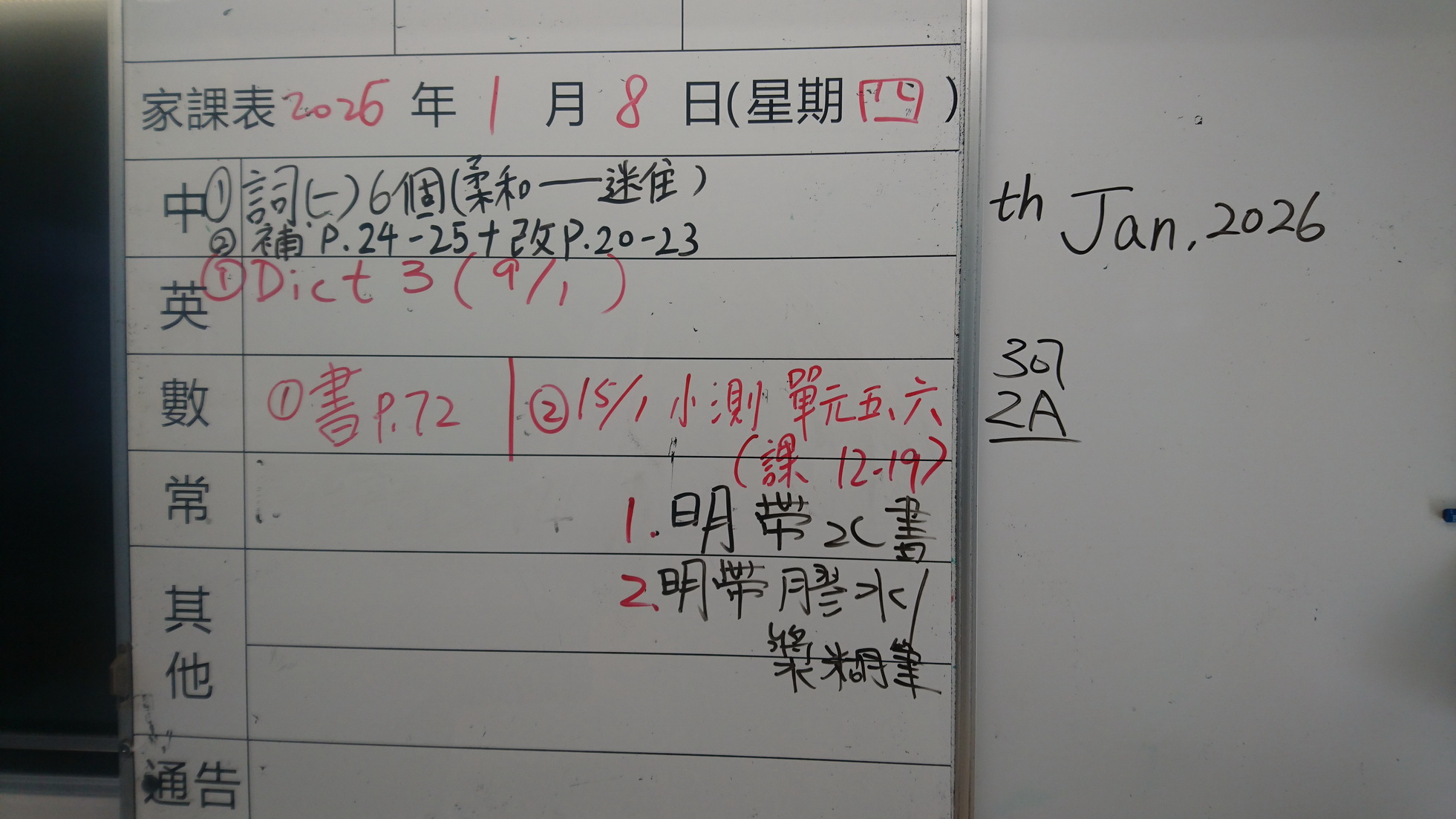 四年級家課代號表