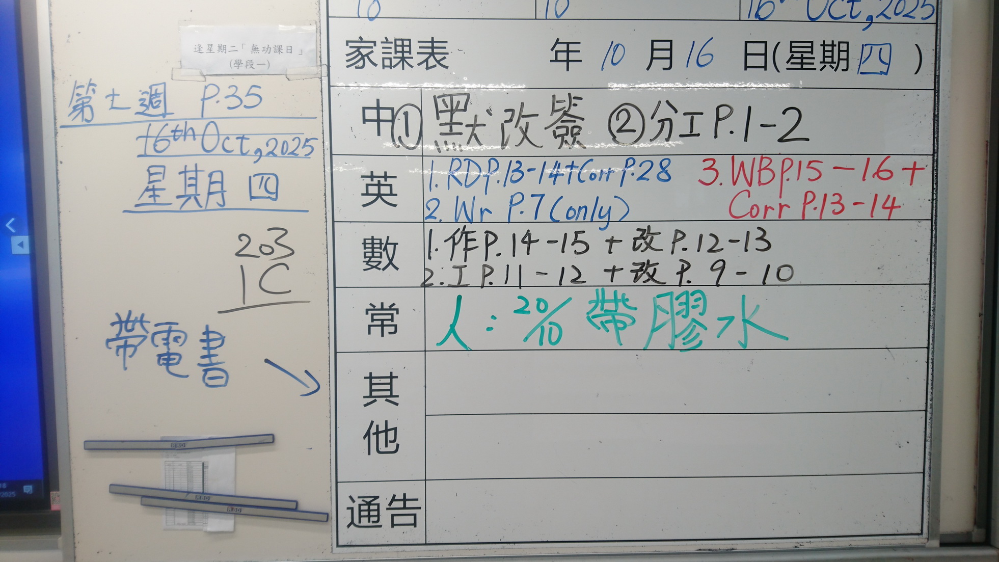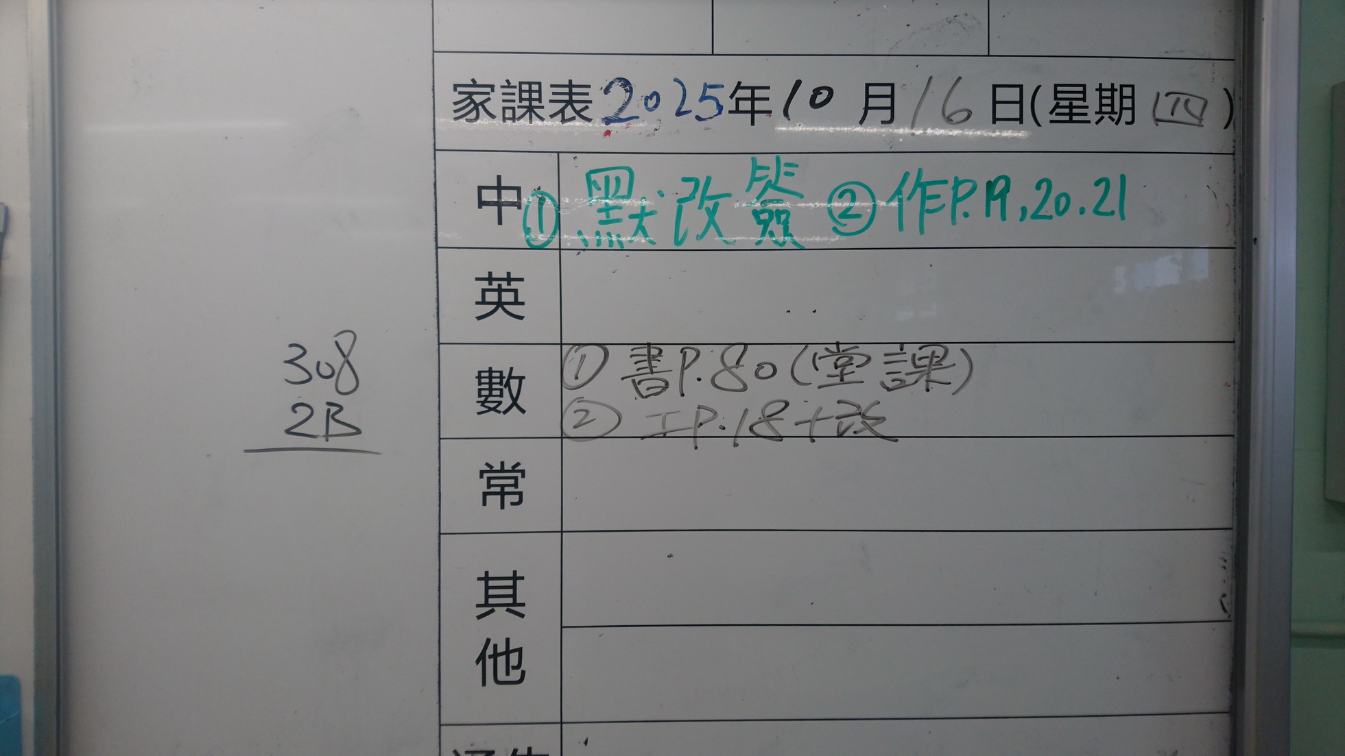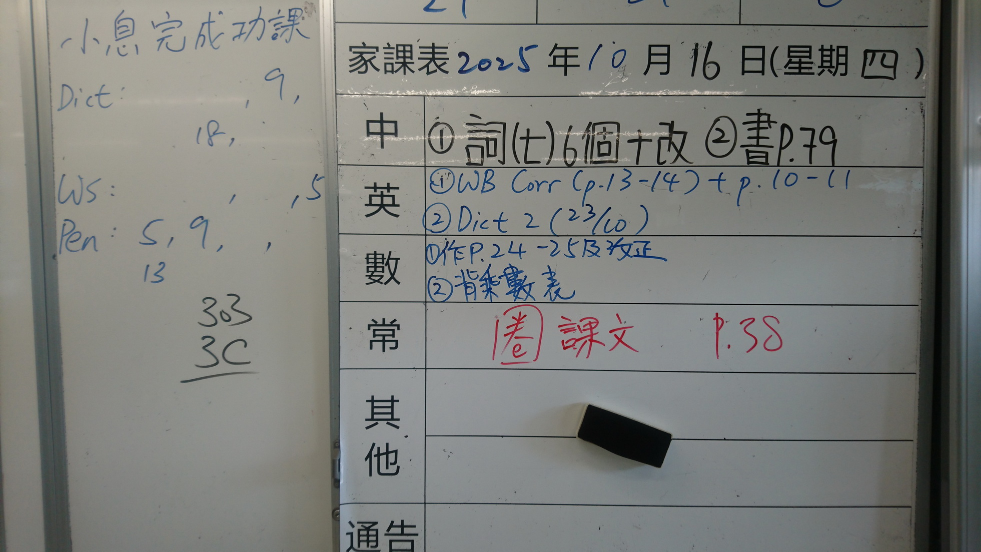 四年級家課代號表
