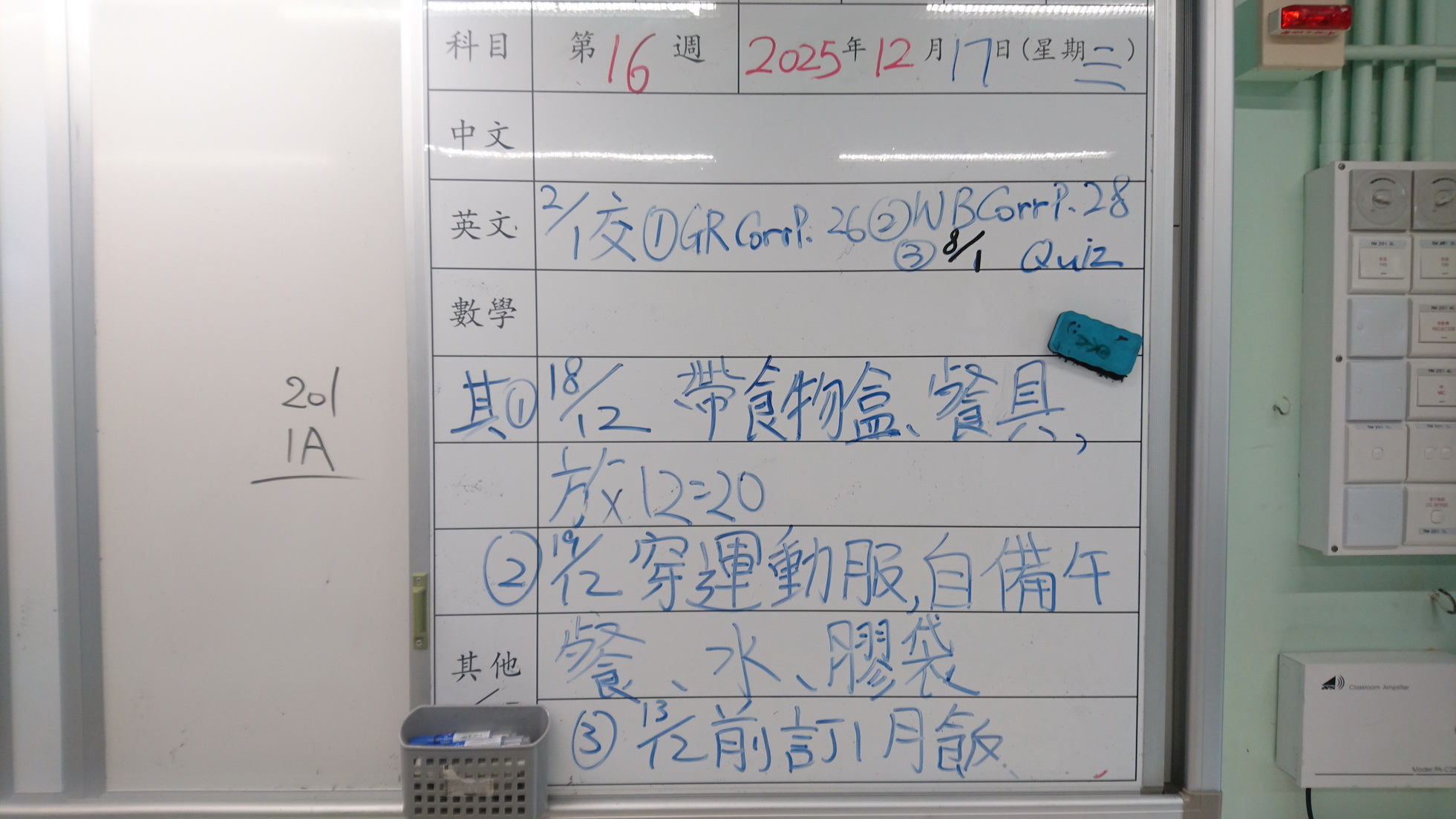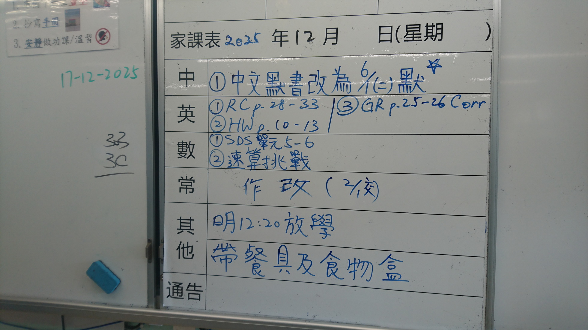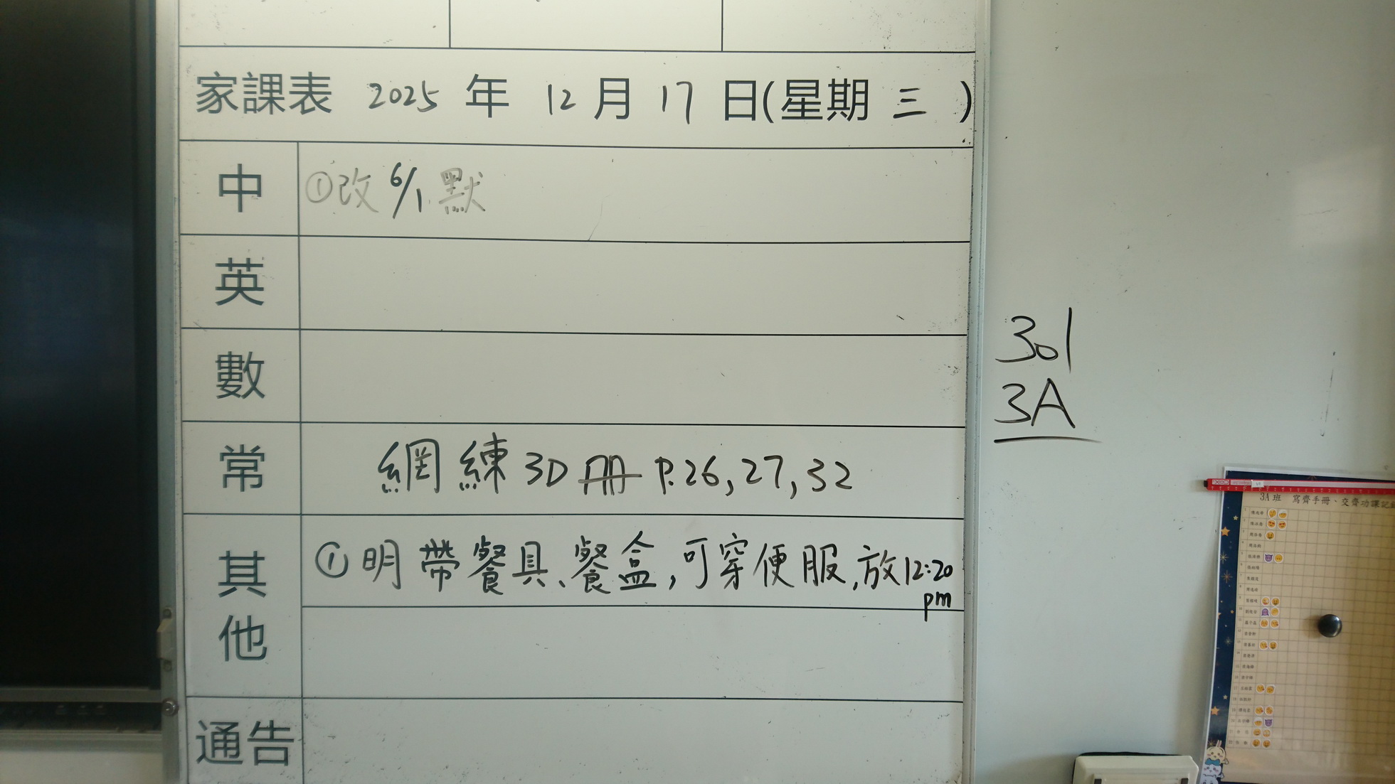 四年級家課代號表