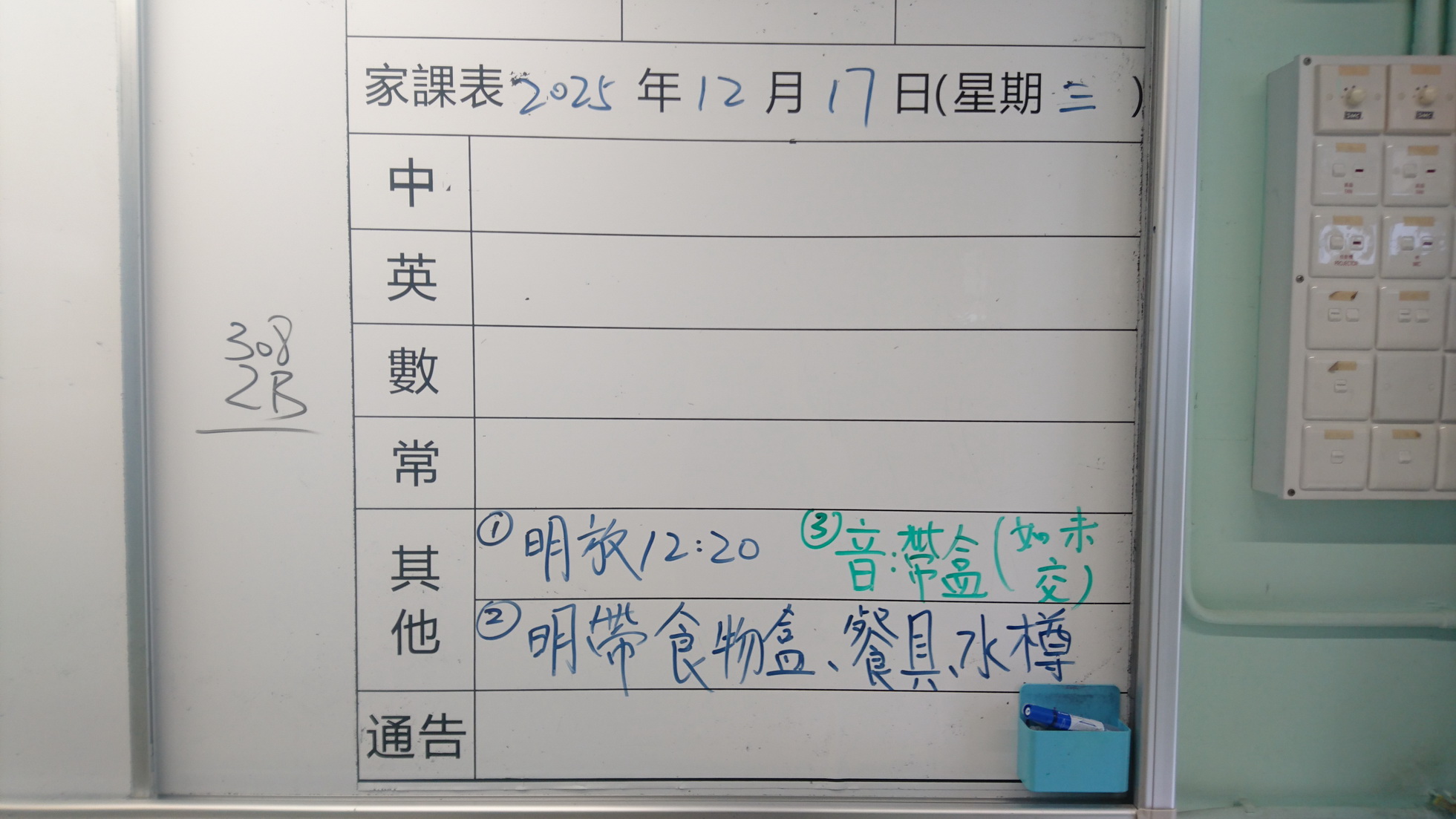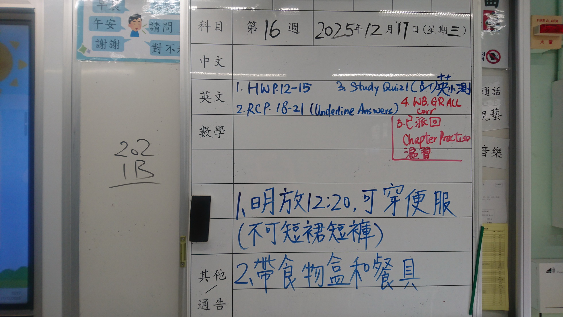 二至三年級家課代號表