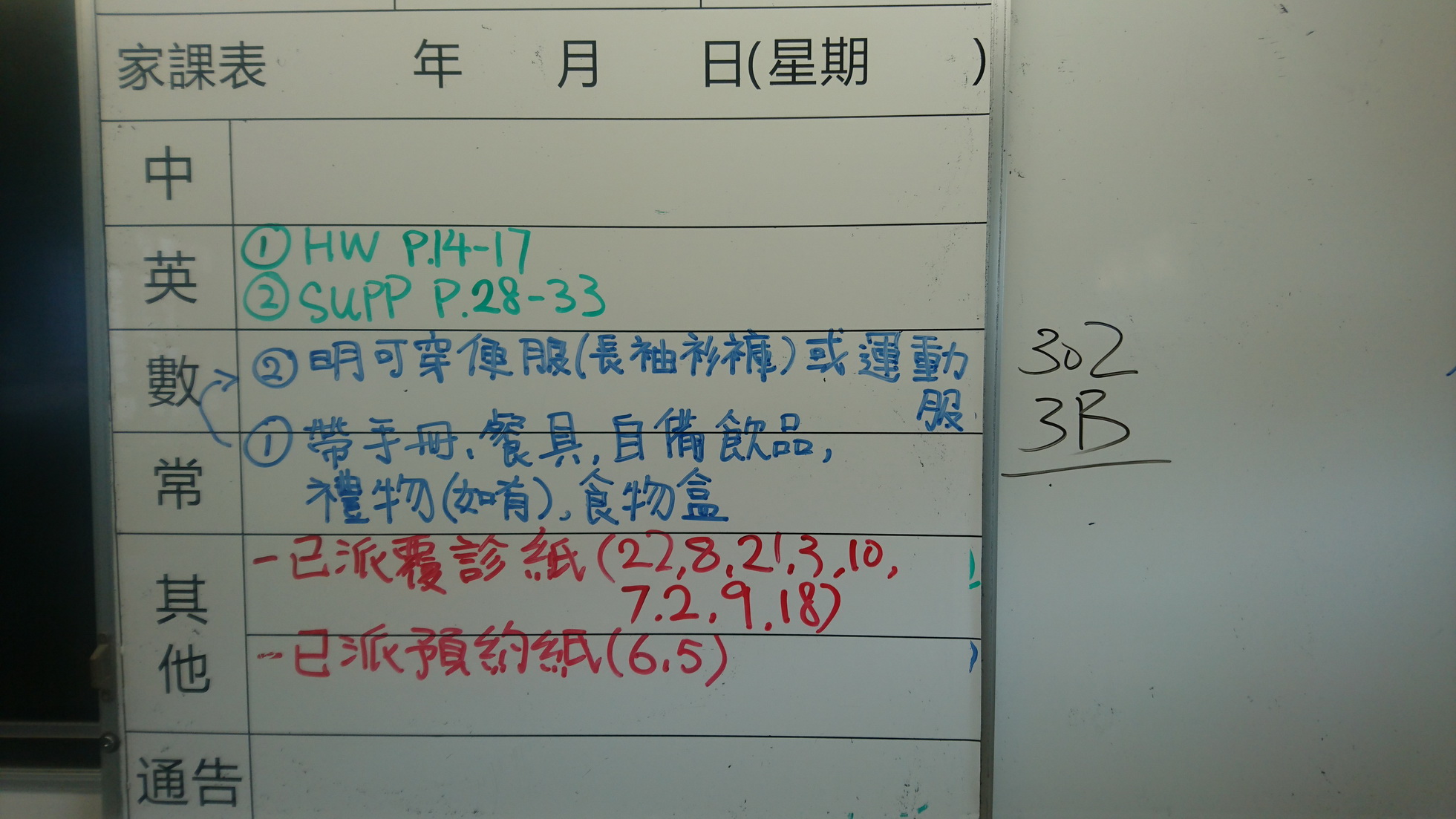 五至六年級家課代號表