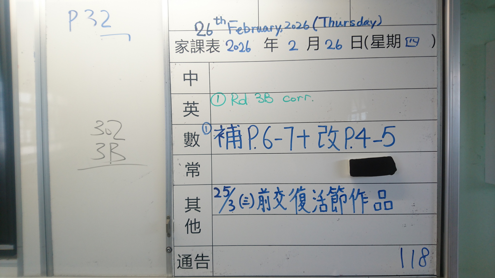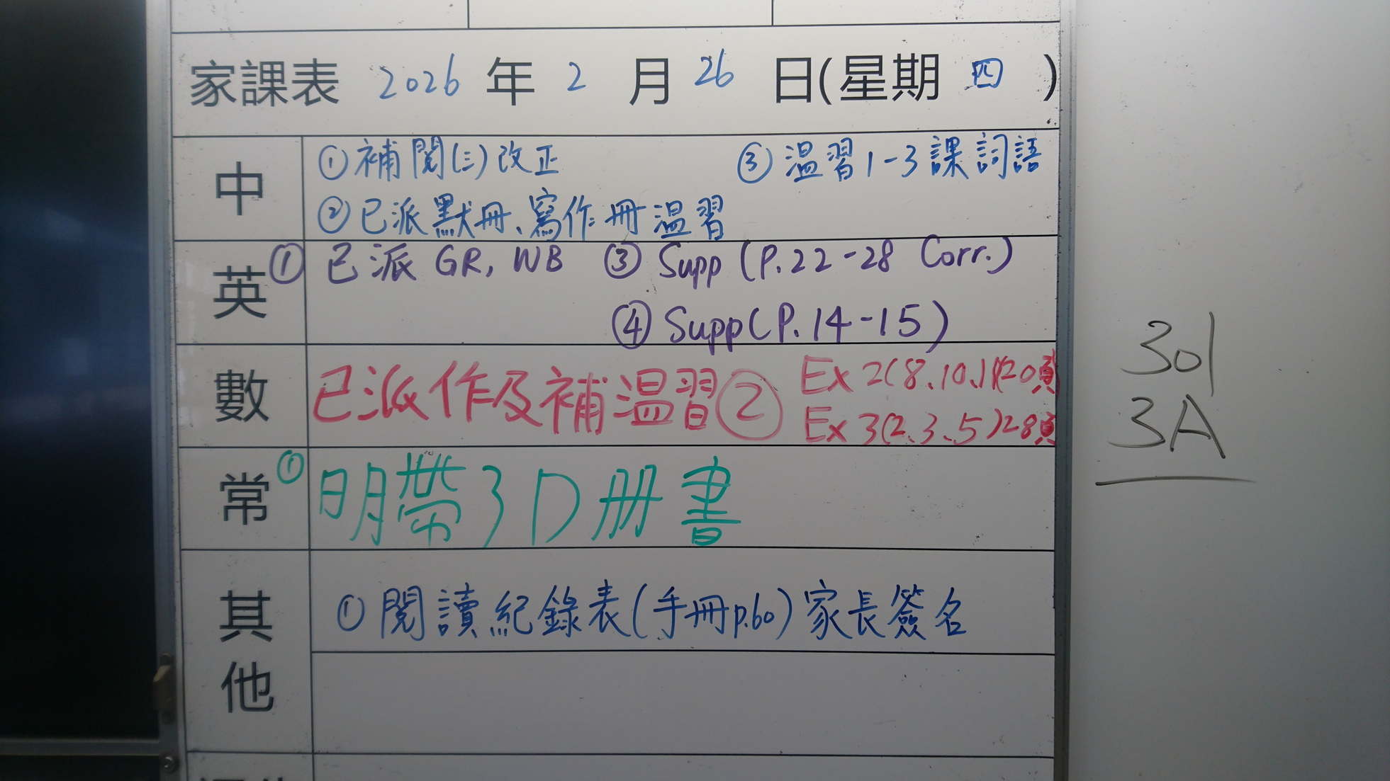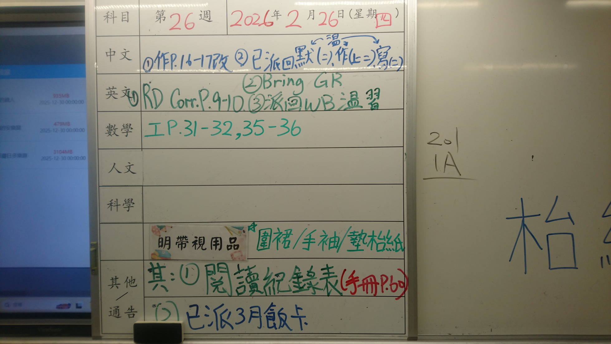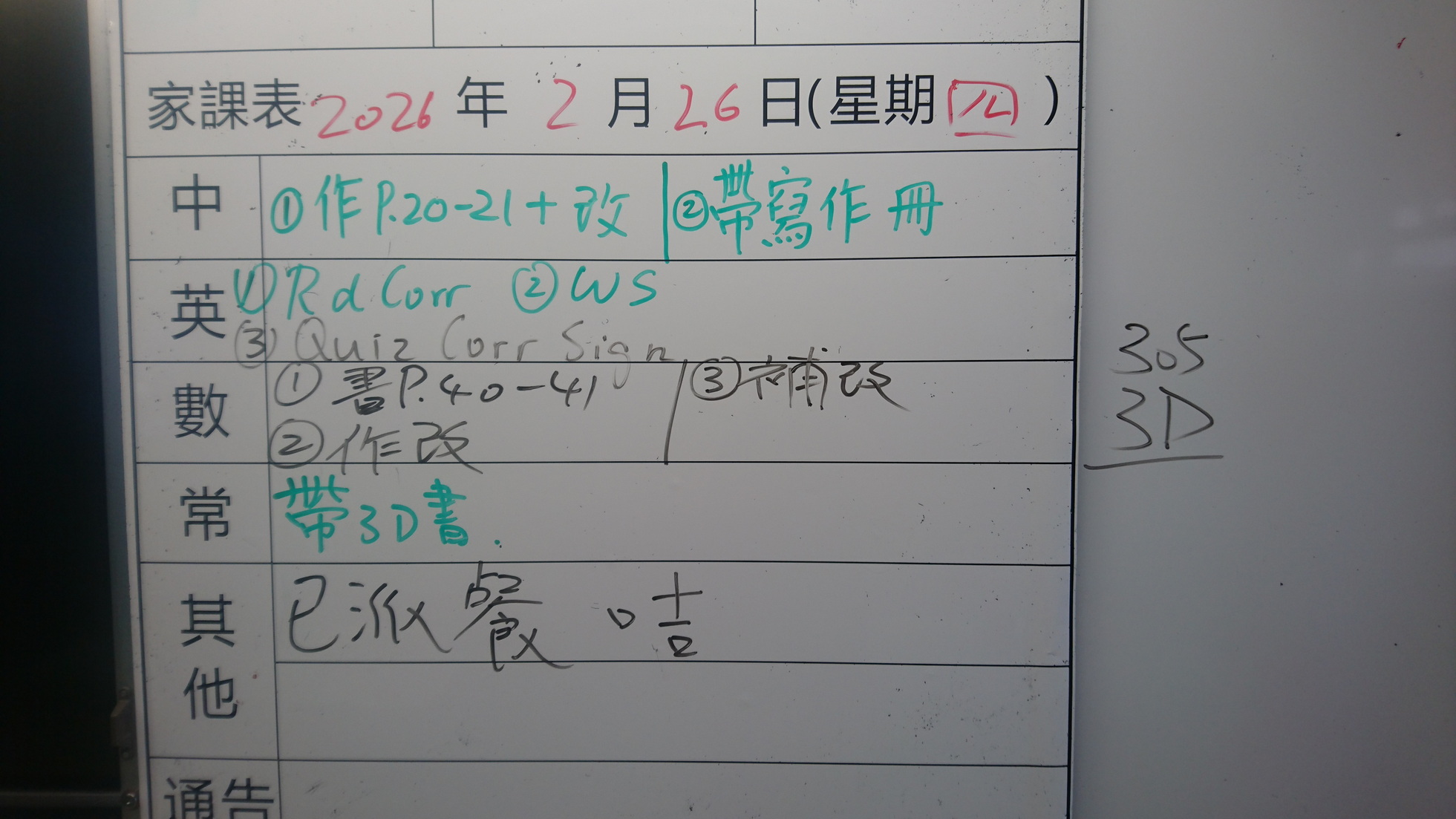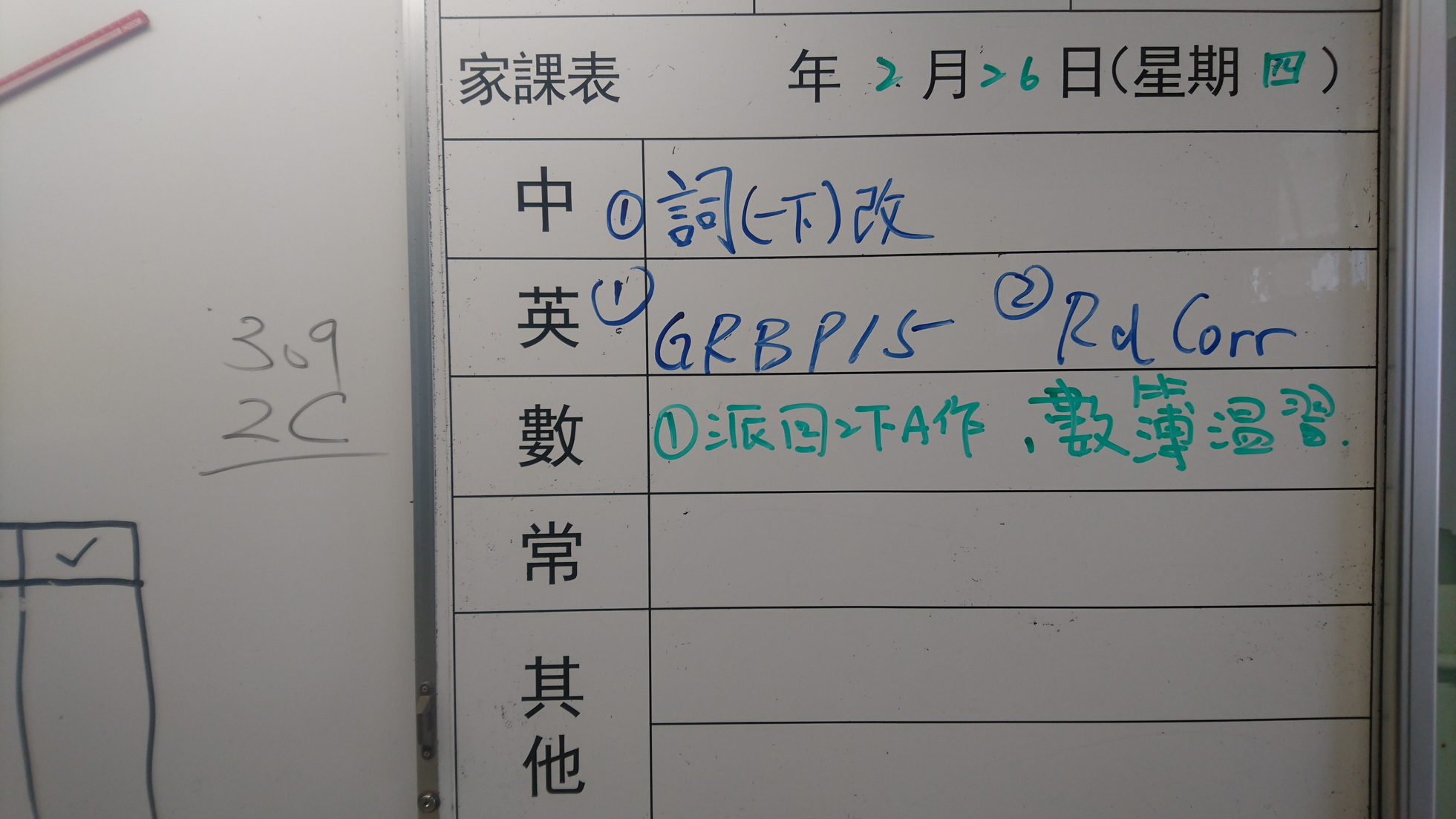 四年級家課代號表