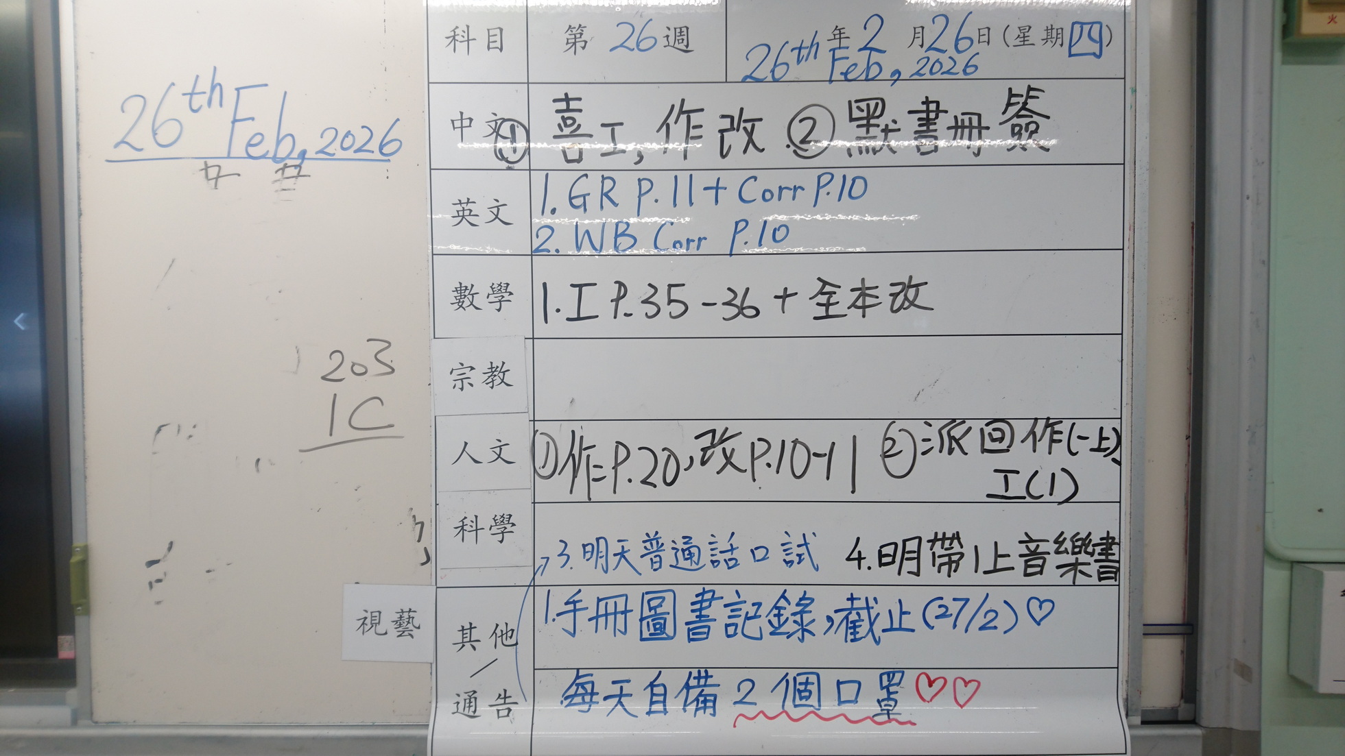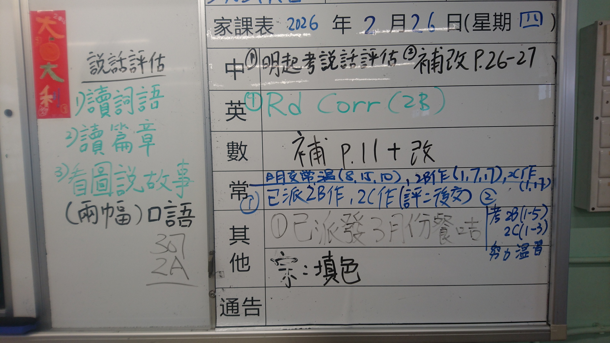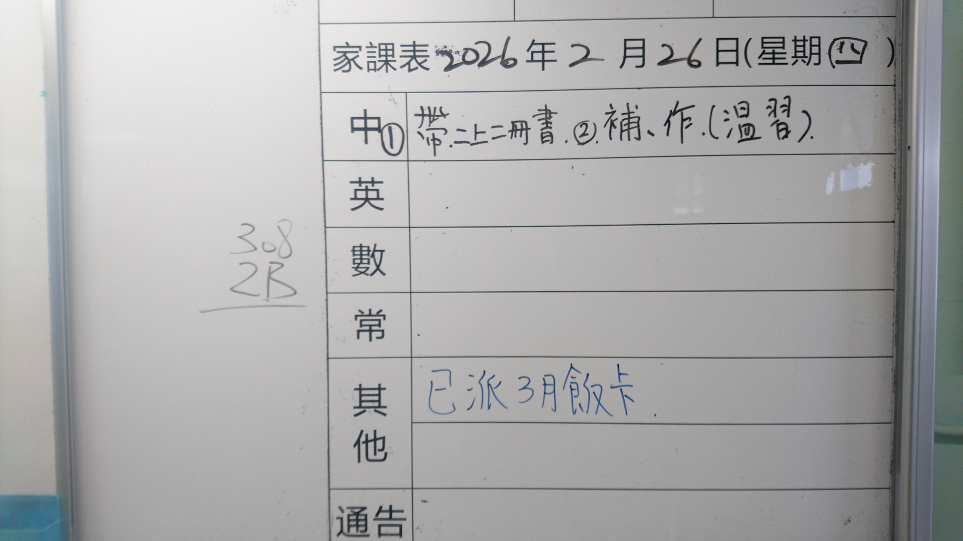 二至三年級家課代號表