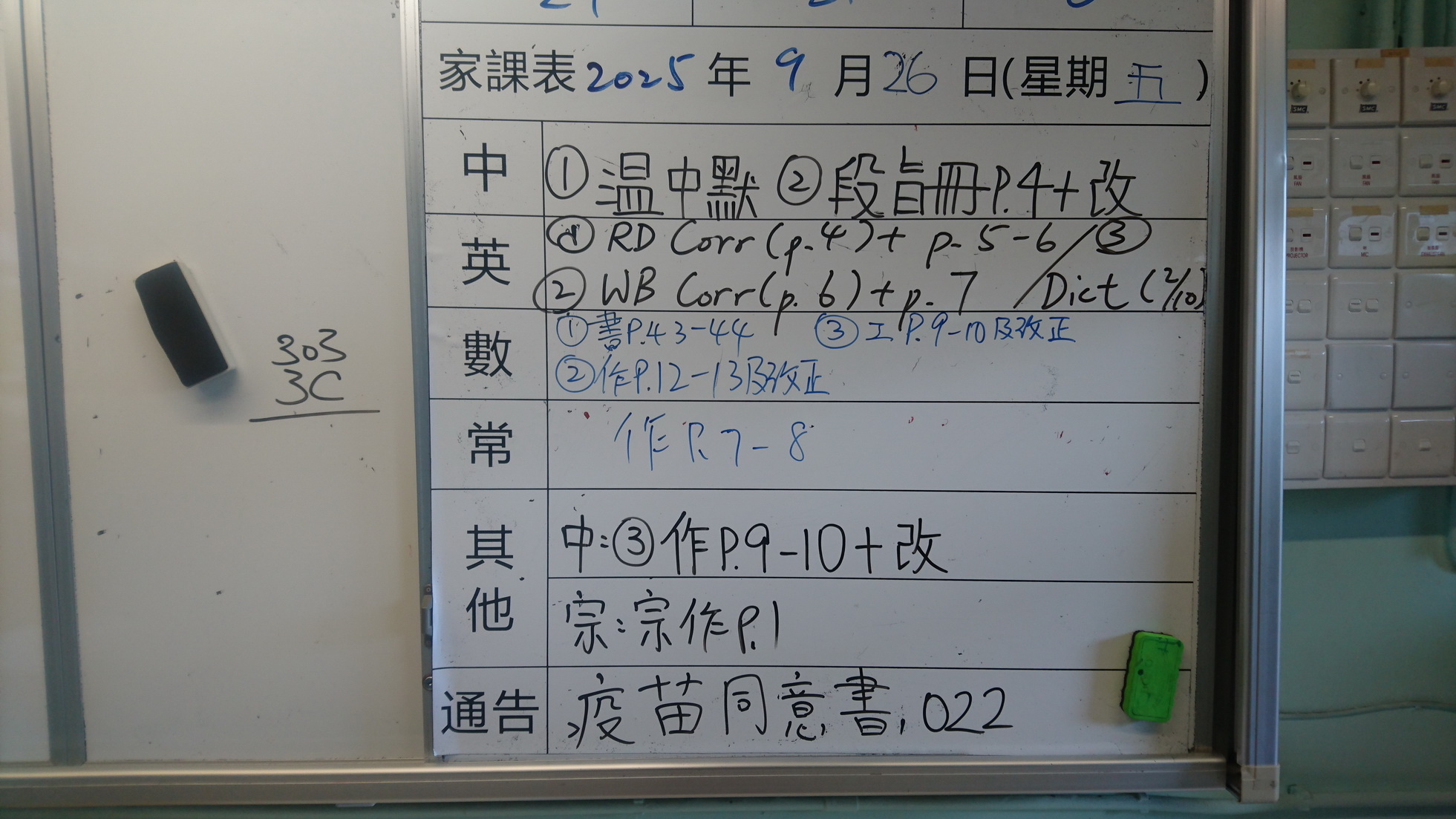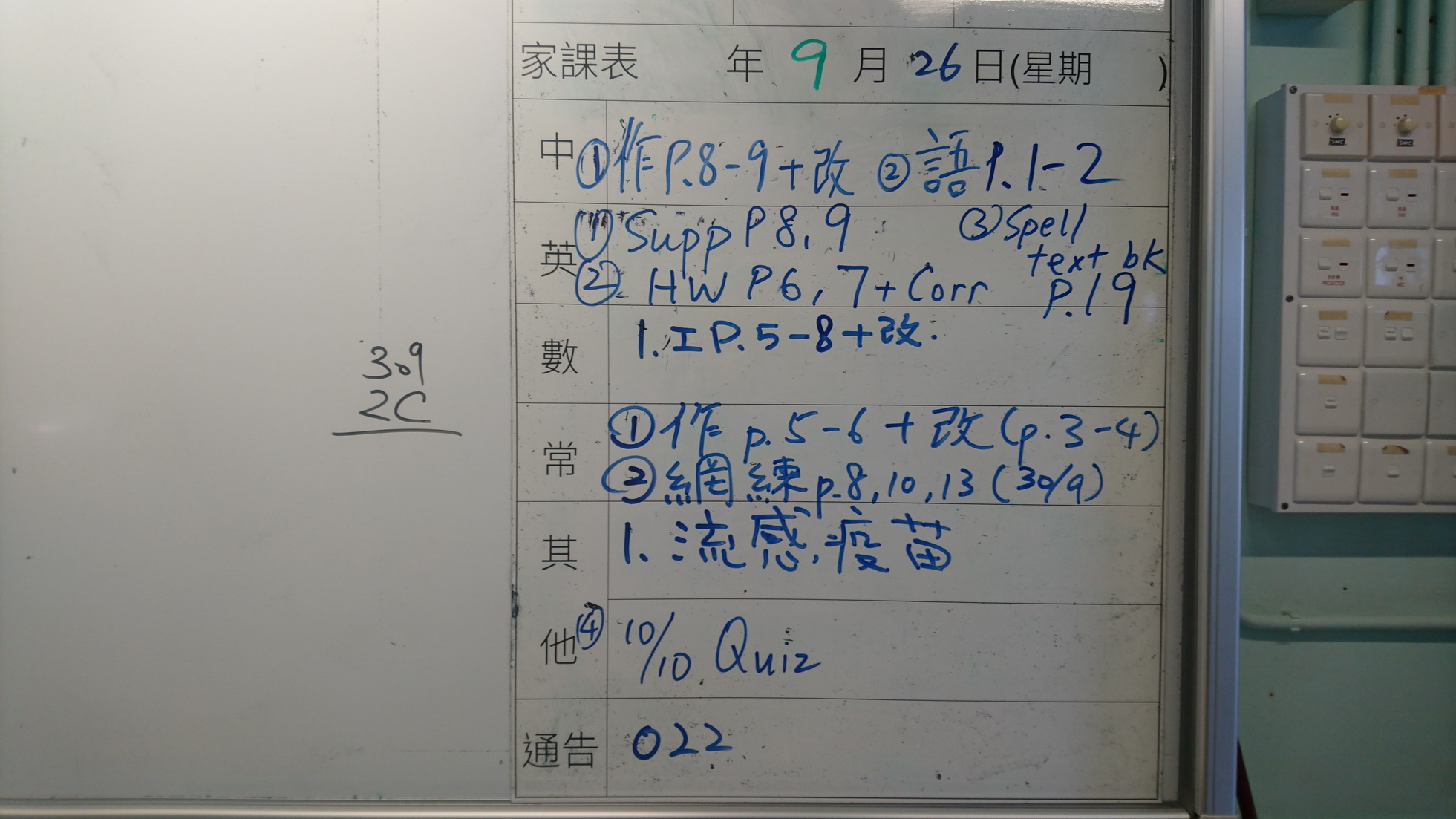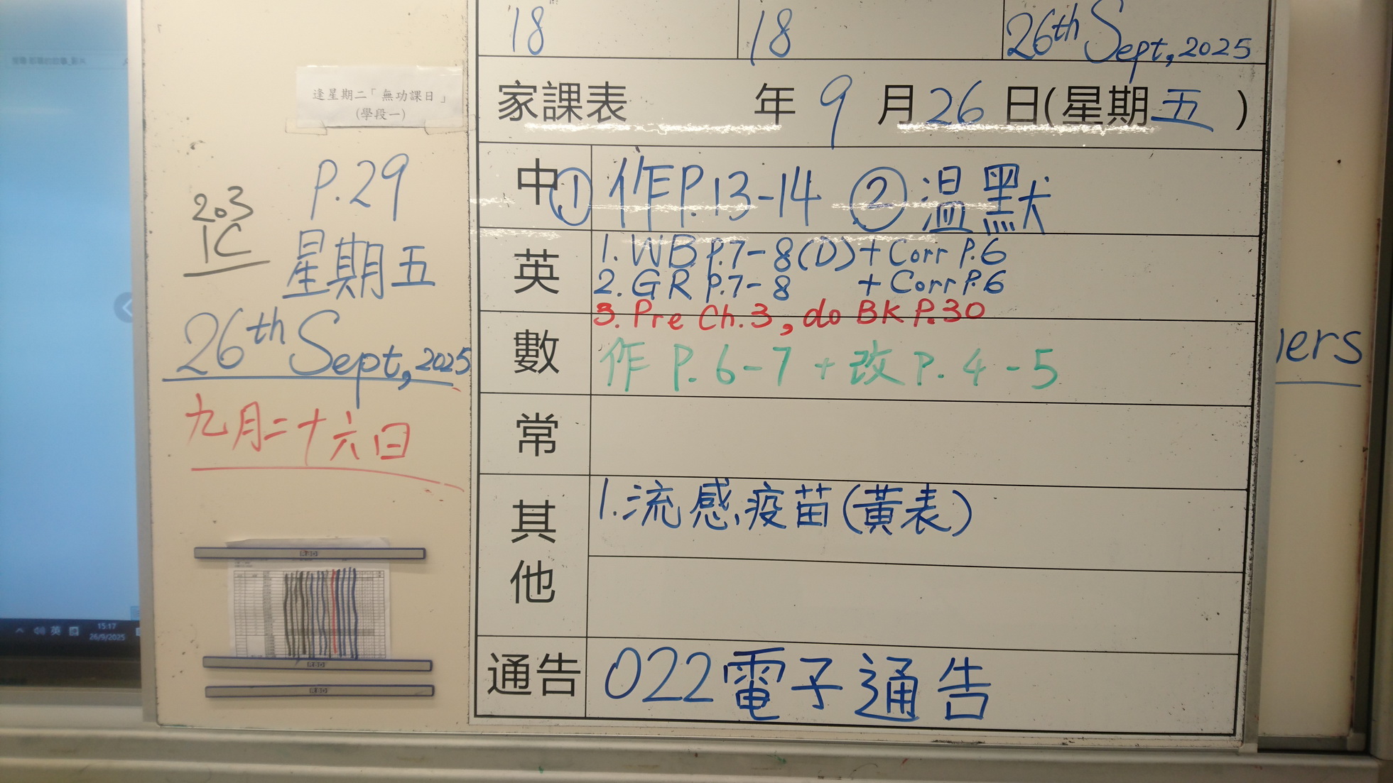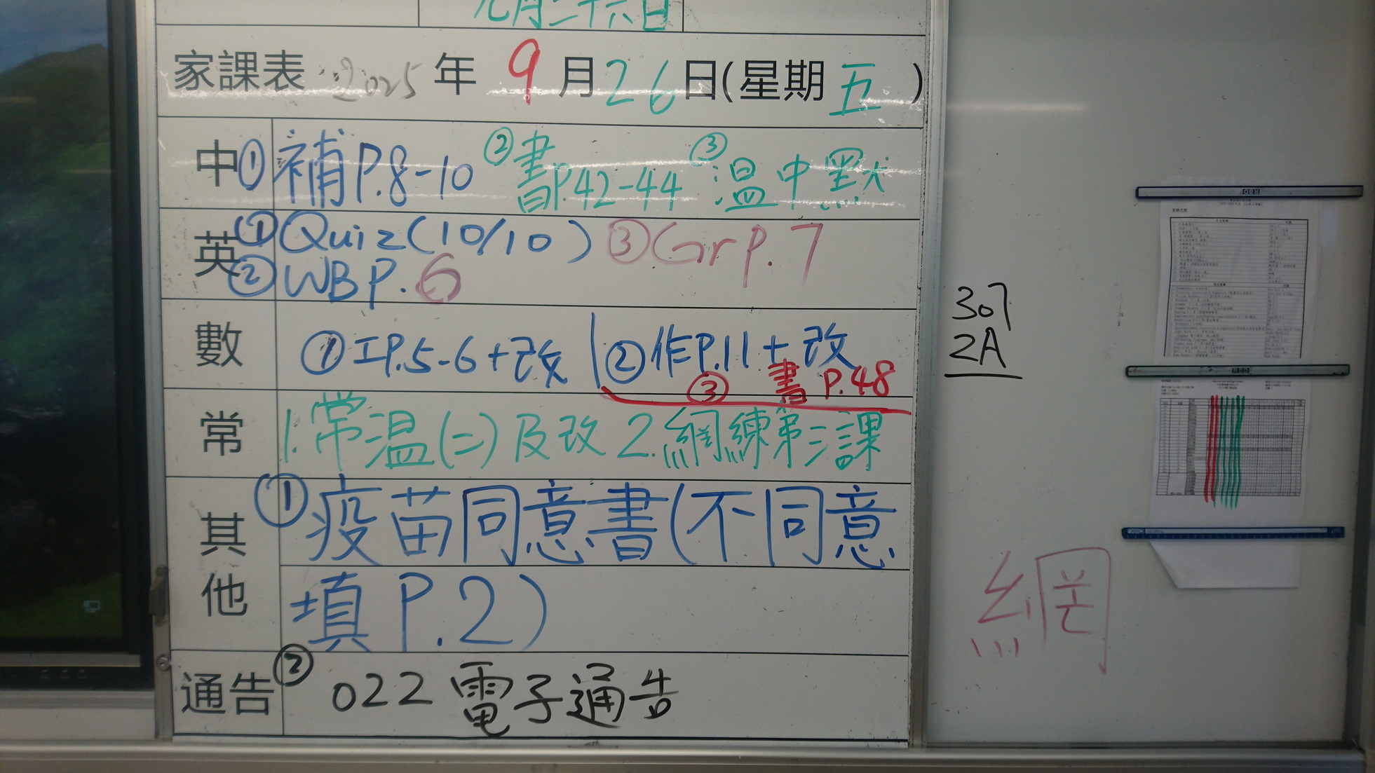 五至六年級家課代號表