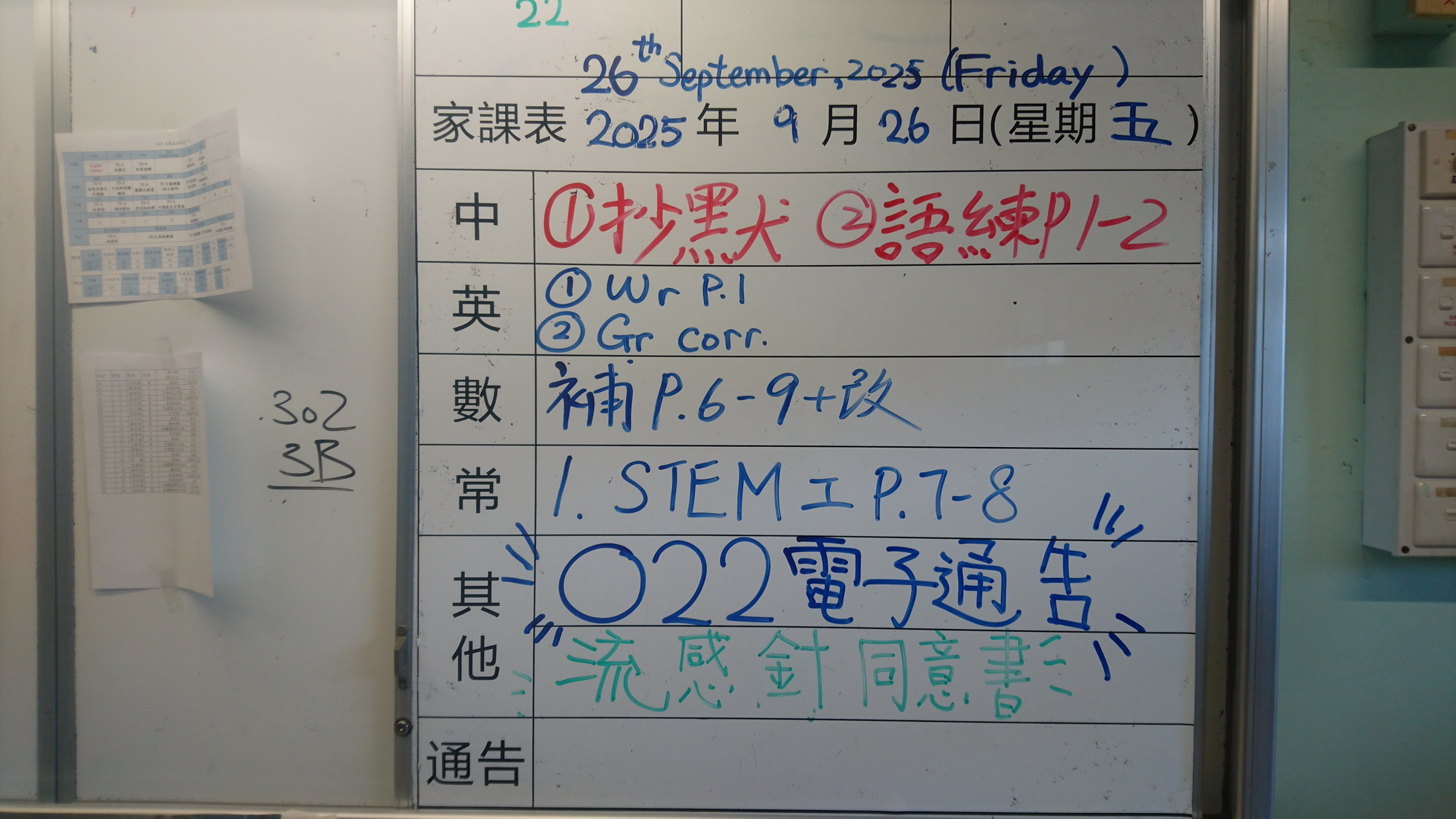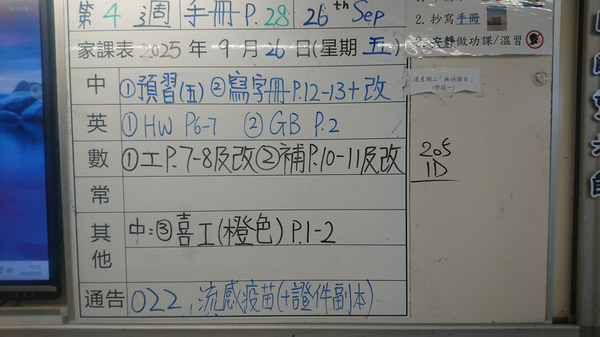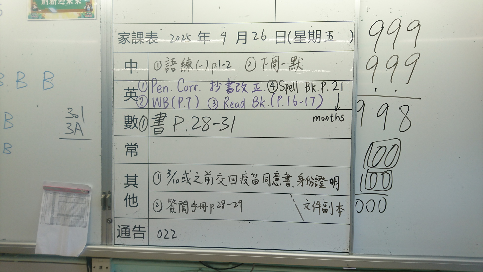 四年級家課代號表