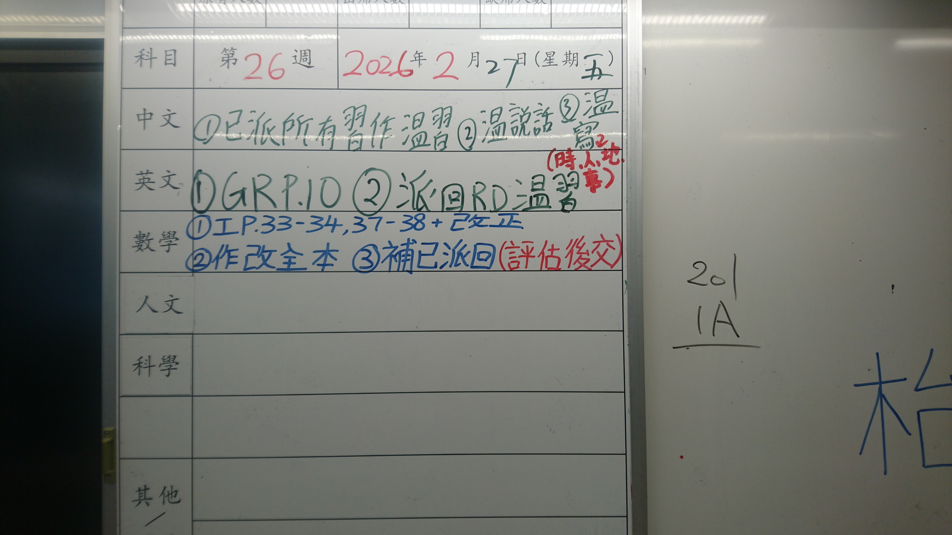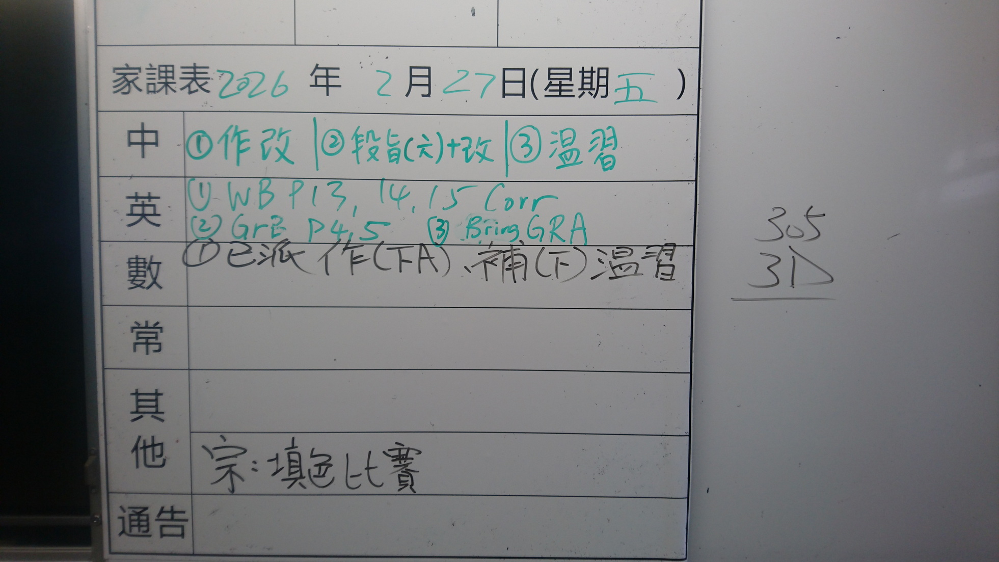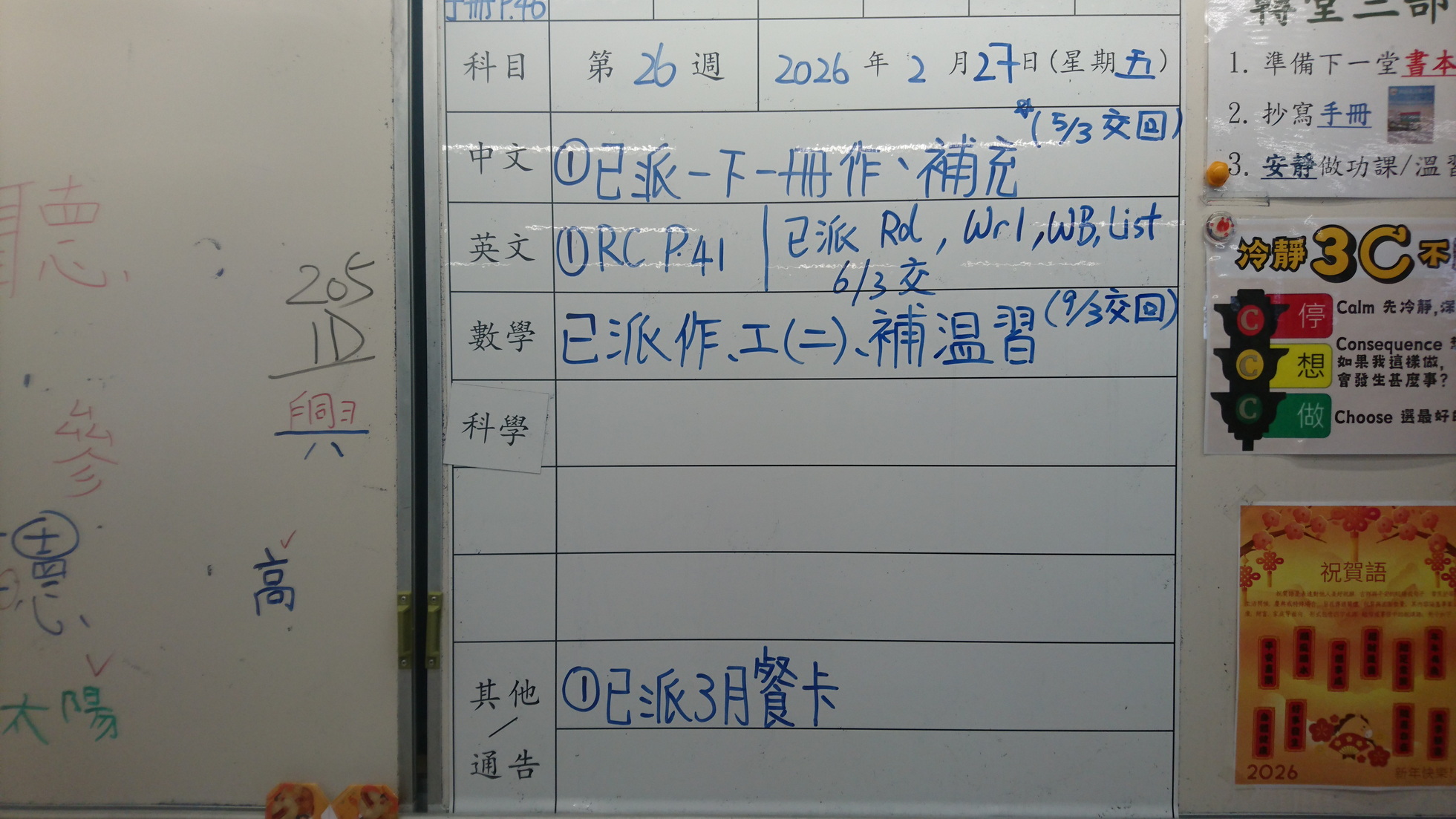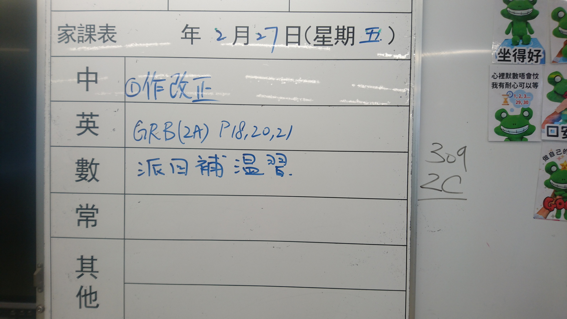 四年級家課代號表
