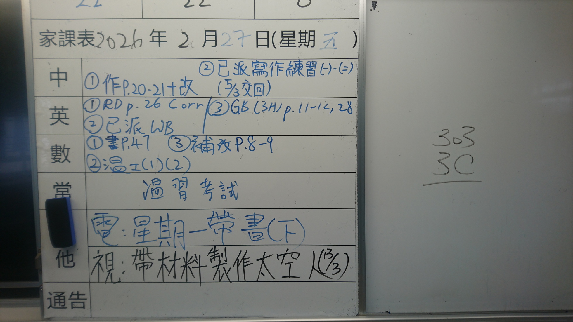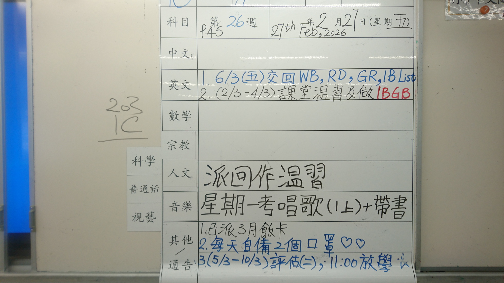 五至六年級家課代號表
