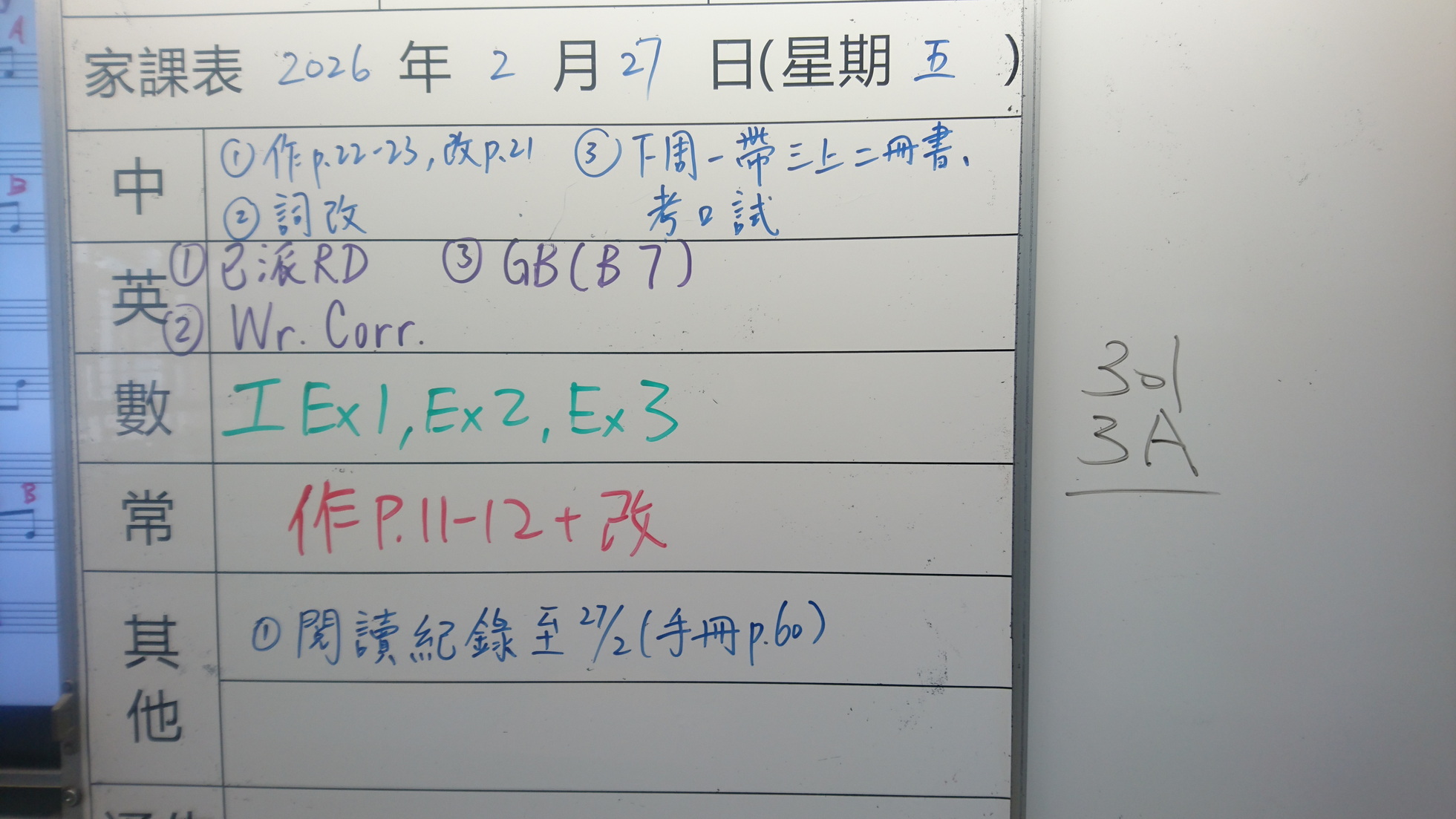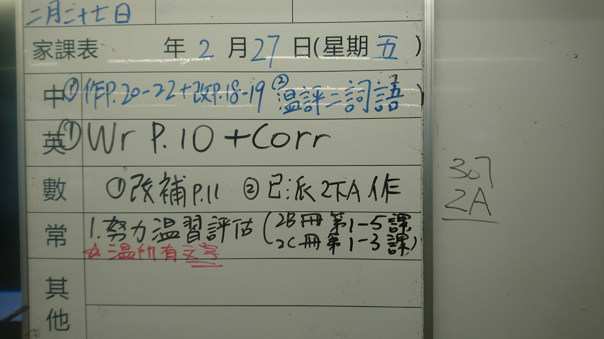二至三年級家課代號表
