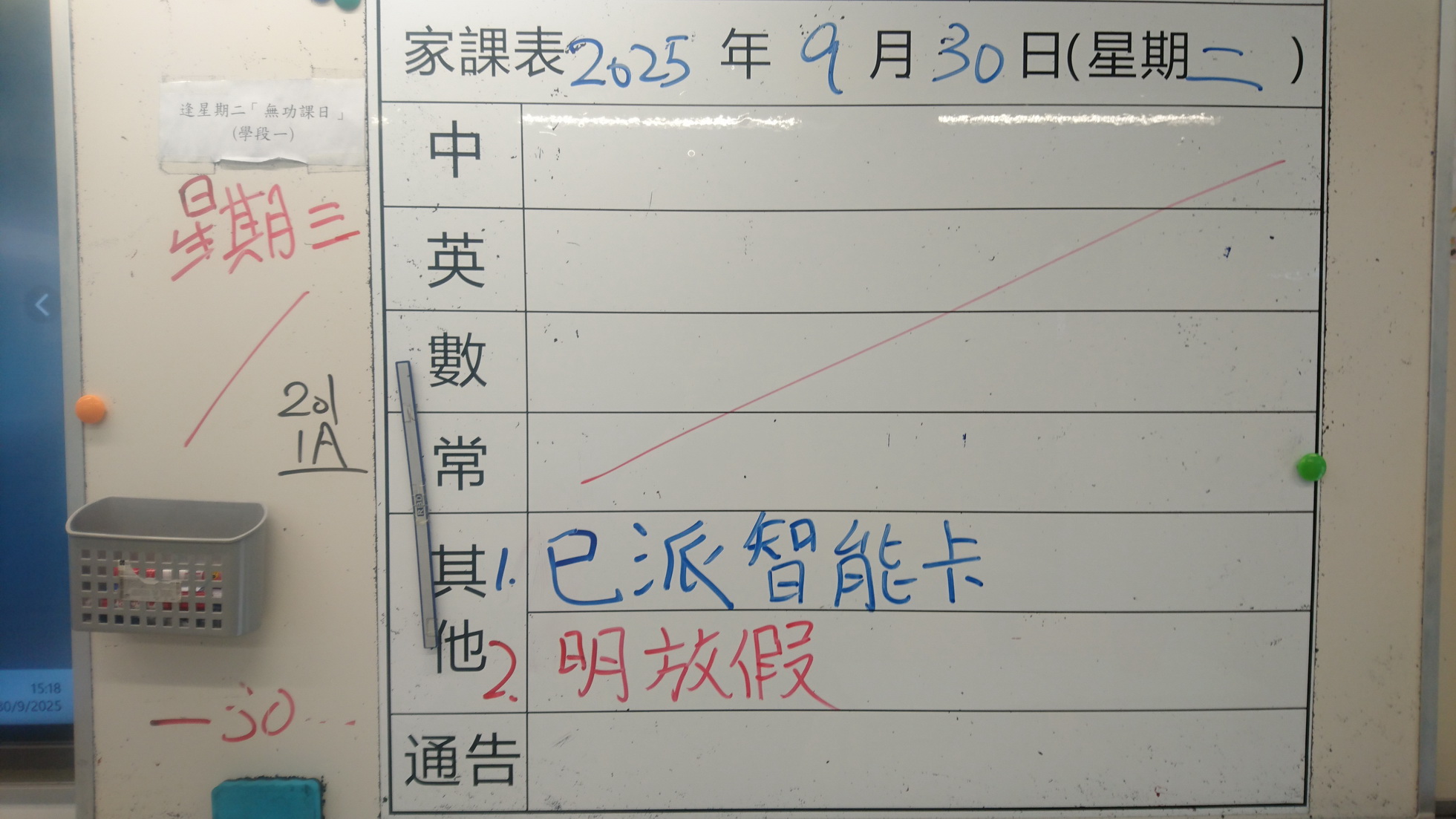 一年級家課代號表
