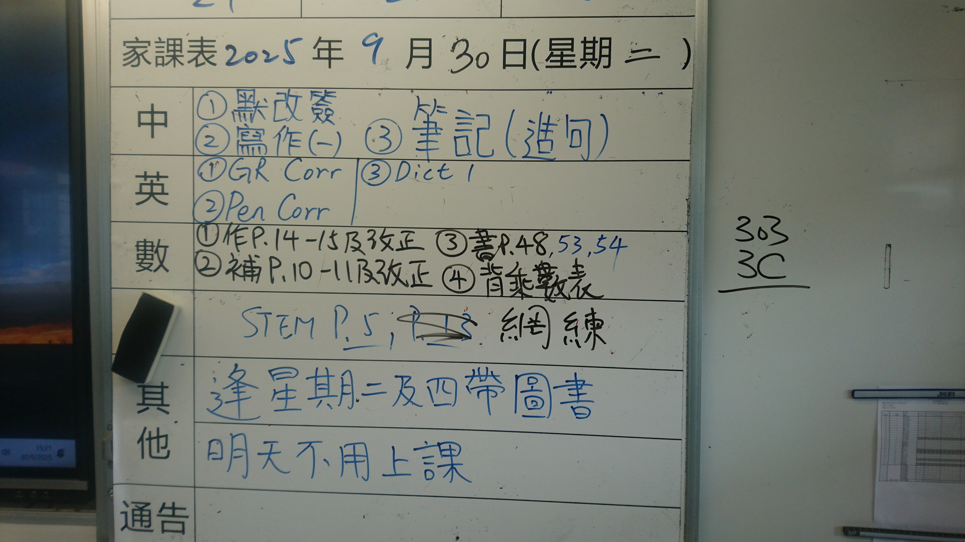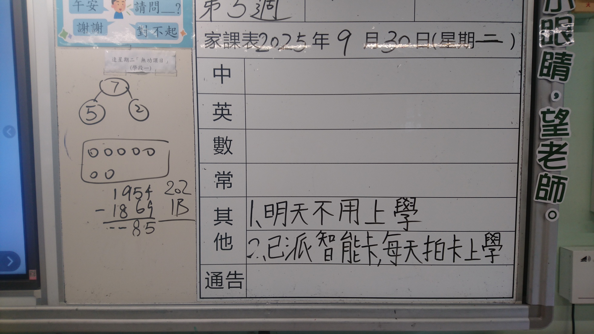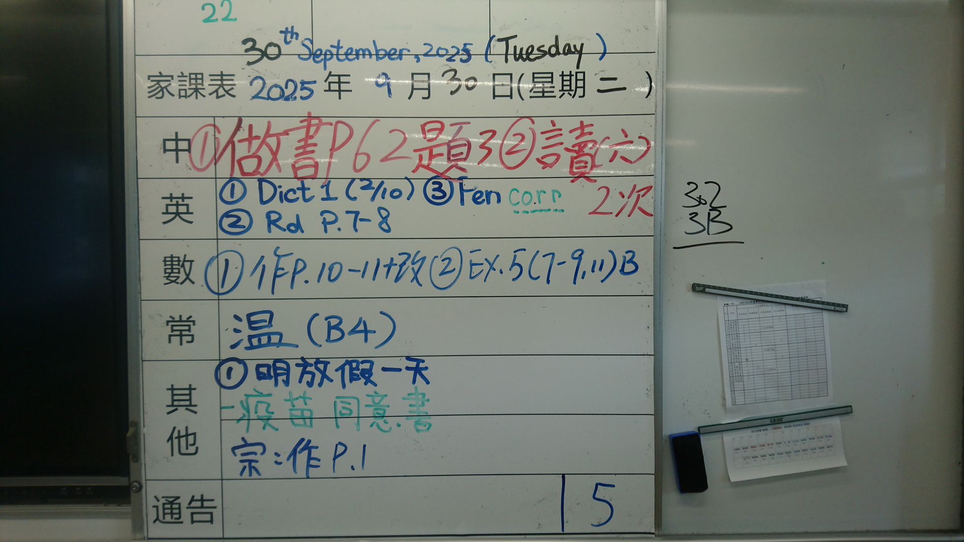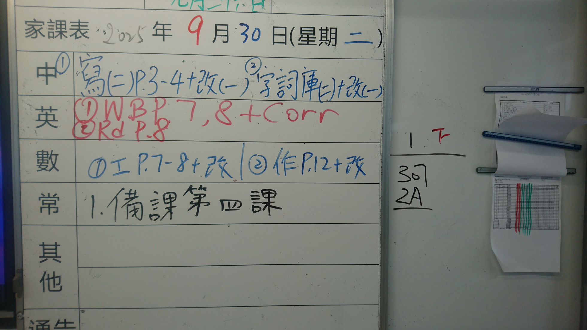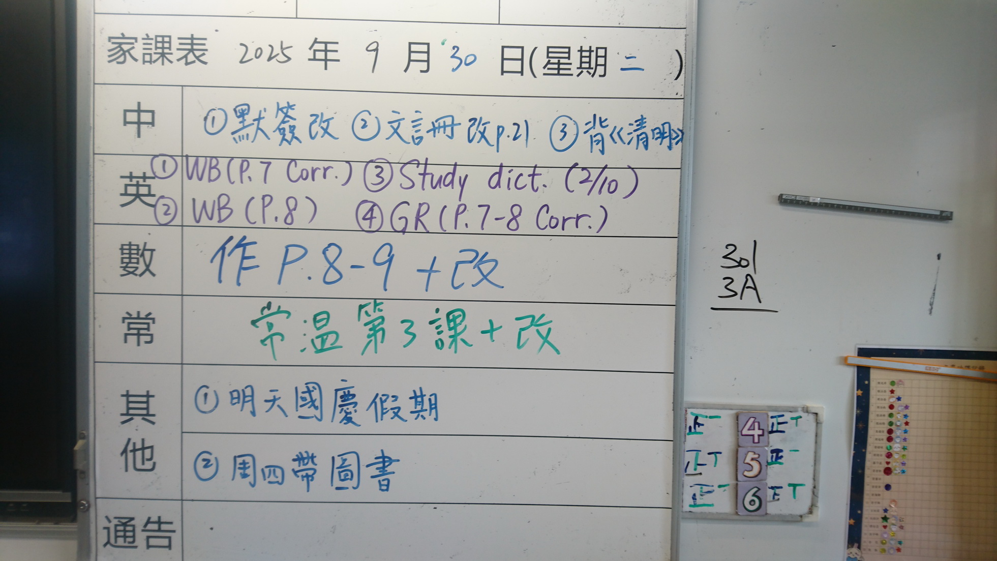 四年級家課代號表